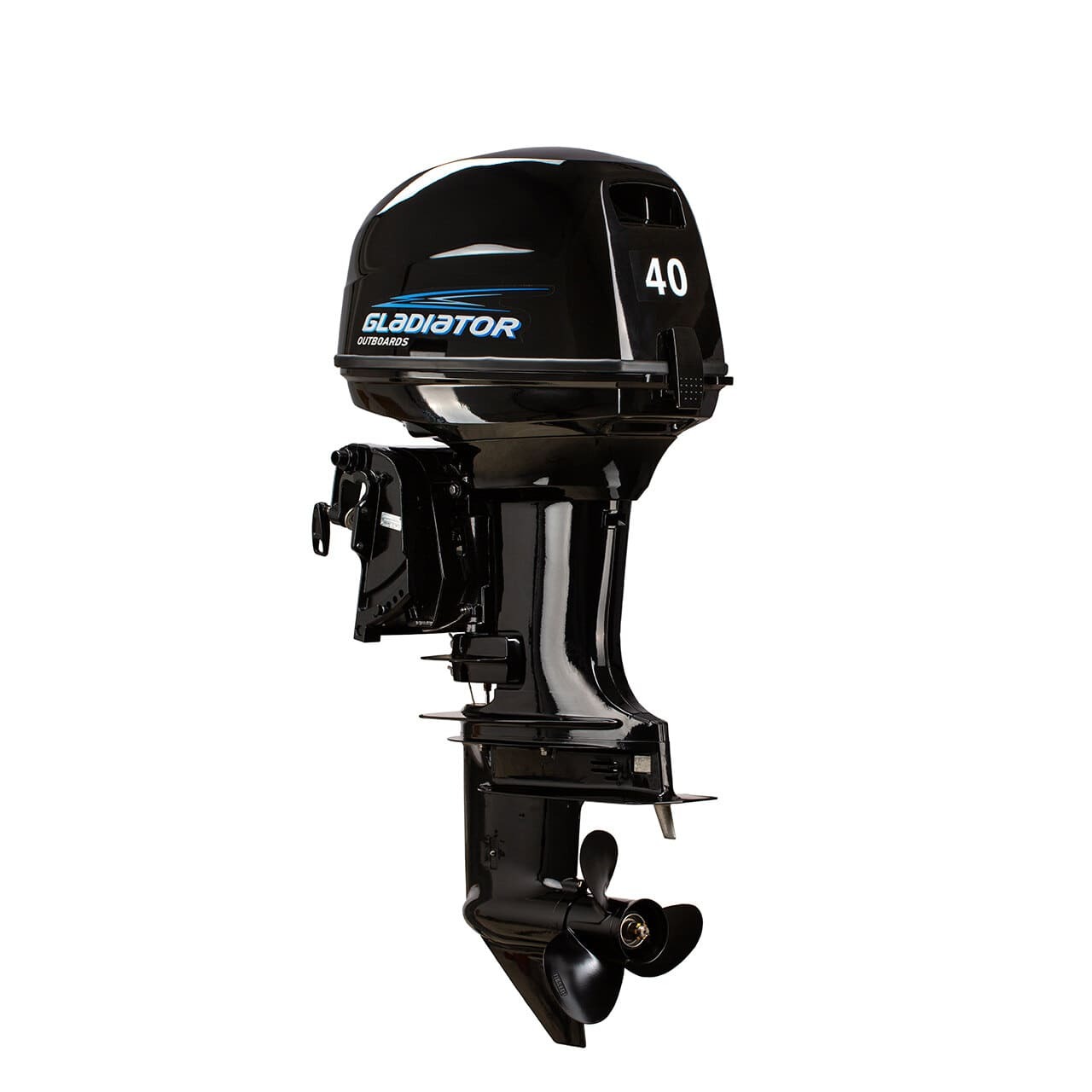 Gladiator G40FES - 2-х тактный подвесной лодочный мотор мощностью 40 л.с. Лодочный мотор Gladiator 40 FHS может быть рекомендован для установки на лодки (рекомендованная длина транца стандартная 381 мм). Мотор выгодно отличается сочетанием высокой мощности и экономичности работы. Простая система запуска и управления позволяют эффективно использовать все возможности двигателя — это высокая маневренность, быстрый набор максимальной скорости, стабильная работа на различных оборотах, а вместительный топливный бак (24 л) поможет преодолевать значительные расстояния, при этом водяная система охлаждения поможет избежать перегрева даже при длительном режиме на максимальной скорости. Двигатель довольно прост в обслуживании, не требует выполнения особых процедур для запуска или остановки. Еще одним из ключевых преимуществ мотора Gladiator 40 FHS является высокое качество изготовления и сборки — хорошо продуманная конструкция двигателя обеспечивает оптимальное функционирование всех основных рабочих компонентов оборудования.