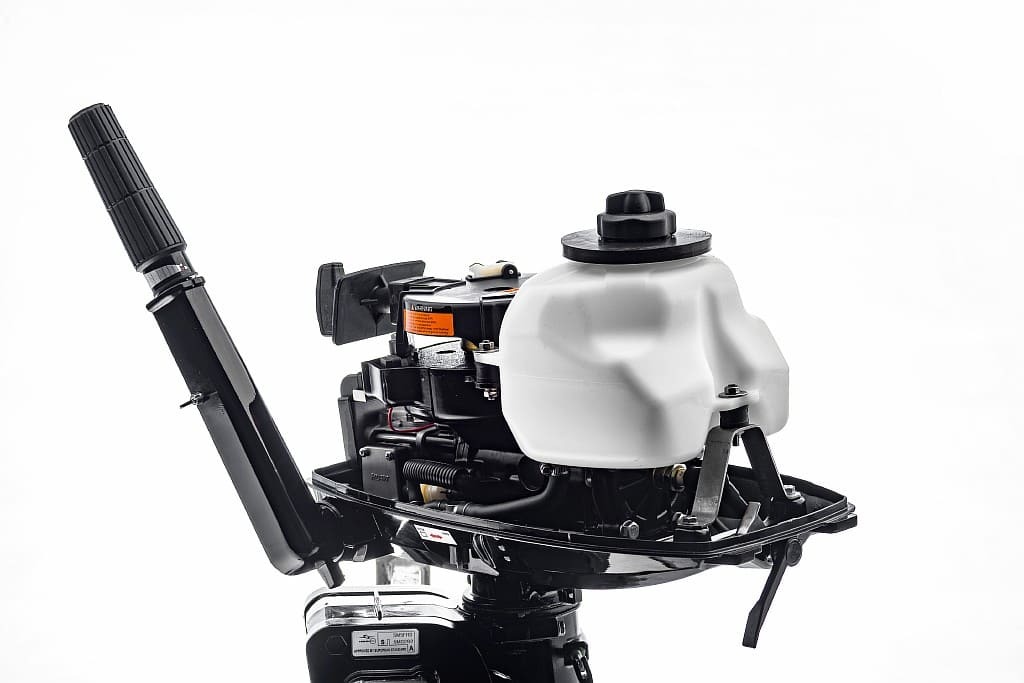 Для облегчения запуска холодного двигателя в конструкции карбюратора предусмотрена воздушная заслонка, с регулировкой на корпусе. А для контроля работы системы охлаждения на моторе установлена специальная форсунка. Мотор Marine Rocket MR5FHS запускается ручным стартером, а управляется стандартным румпелем с поворотной ручкой газа (гашеткой мотоциклетного типа) с анти-проскальзывающими насечками.