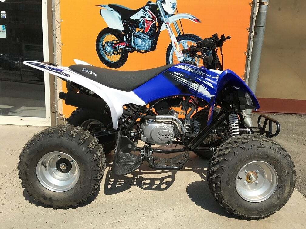 Мощный четырехтактный двигатель, установленный на квадроцикл Scorpion 125A, позволяет эксплуатировать его не только детям, но и взрослым. Легкое управление, высокая маневренность доставят Вам удовольствие от вождения агрегата, а дисковые тормоза обеспечат цепкое торможение на любом участке дорог.