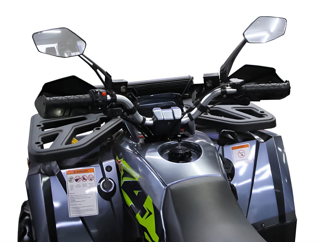 Motoland 200 Wild Track X Winch имеет широкие колеса с высоким профилем, которые обеспечивают хорошее сцепление с поверхностью и позволяют легко преодолевать различные препятствия. По сравнению с базовой версией комплектуется диодной балкой, подогревом ручек, аварийными огнями, зарядкой USB, а также лебедкой и фаркопом, что позволяет буксировать грузы или использовать его для других целей.