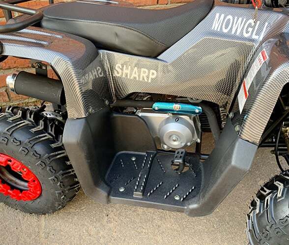 MOWGLI SHARP - детский бензиновый квадроцикл, отличающаяся надежностью и строгим дизайном. Эта модель оснащена четырехтактным двигателем, рабочий объем которого 110 кубических сантиметров. Подойдет ребенку в возрасте от 4 лет, что позволит ему с самого детства примерить на себя роль водителя. Квадроцикл способен развить скорость до 45 км/ч, а ножной тормоз делает управление транспортным средством более удобным, помогает развить координацию ребенка. Благодаря наличию родительского контроля, действующего на расстоянии 50 метров, повышается уровень безопасной езды. Его обеспечивает брелок, входящий в базовую комплектацию Маугли Шарп. Также родителю предоставляется возможность сопровождать ребенка в поездках, так как конструкция выдерживает нагрузку до 110 кг. Модель ШАРП - отличное дополнение к активному отдыху Вам и Вашему ребенку, обеспечивающее безопасность и полный контроль за его передвижением. Ограничитель скорости, способный установить определенный «потолок» максимального разгона, отлично справится с этой задачей. Комплект запчастей MOWGLI SHARP