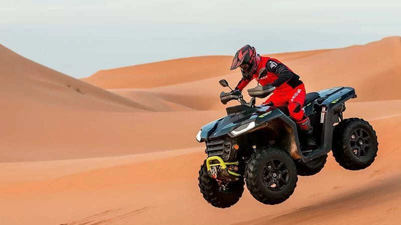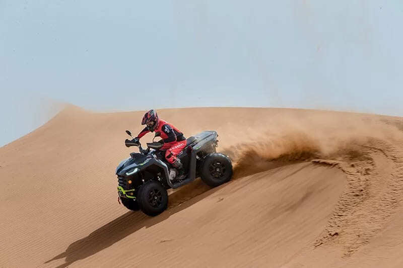 Стоит отметить, что квадроцикл оснащен фарами, которые на 60% ярче обычных галогеновых систем, что гарантирует превосходное освещение дороги и обеспечивает безопасность при движении в условиях недостаточной видимости.