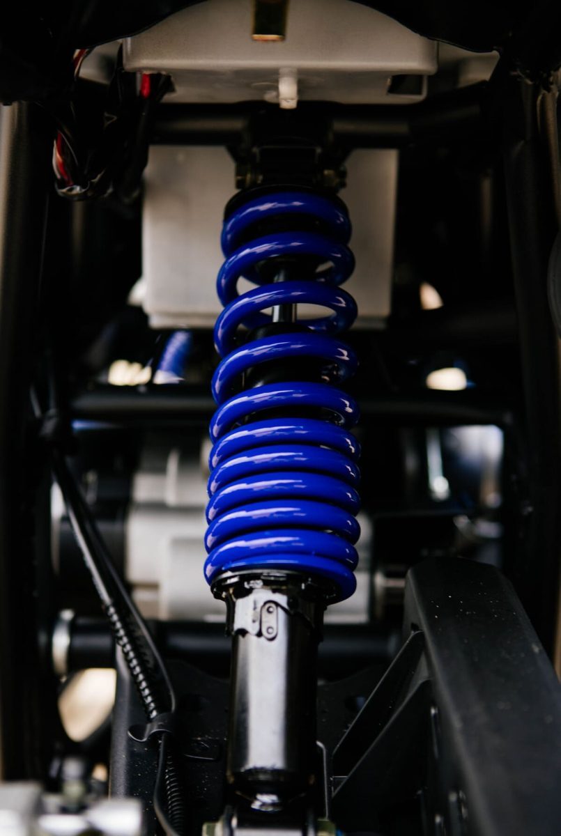 В передней части квадроцикл оснащён двухрычажной подвеской. Такой тип подвески увеличивает устойчивость и управляемость и в 2 раза уменьшает риск опрокидывания. Установлена усиленная цепь Х-RING 530 внутреннего типа смазки, благодаря которой можно забыть о постоянных обрывах цепи и уменьшить время обслуживания до обычной промывки водой.