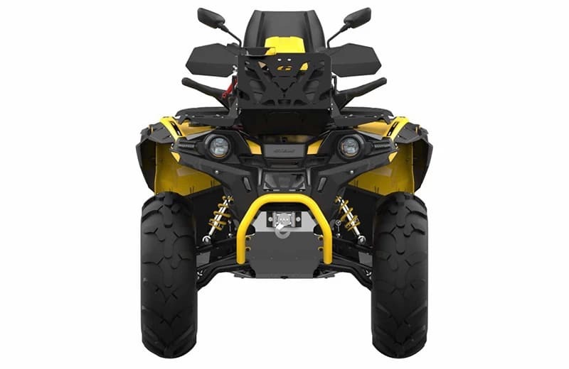 Квадроцикл оснащен шинами сверхнизкого давления диаметром 24 дюйма, что обеспечивает отличное сцепление на мягких участках. Вариаторная трансмиссия в квадроцикле обеспечивает плавное изменение передаточного отношения, позволяя оптимально адаптировать мощность двигателя к условиям движения и обеспечивая стабильный разгон и уверенное маневрирование.
