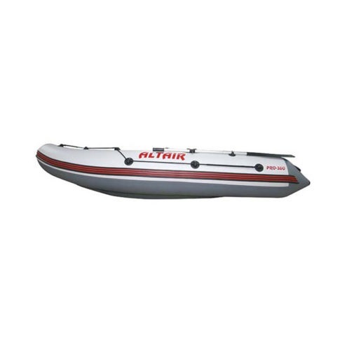 Надувная лодка Альтаир PRO-360 классической компоновки с надувным килем. Массово-габаритные характеристики надувной лодки Альтаир PRO-360: вмещает 5 человек + снаряжение. Сухая масса: 37 кг. Весь комплект надувной лодки в собранном виде умещается в 2 сумки. Максимальная грузоподъемность – 750 кг. Рекомендуемый мотор для использования с Альтаир PRO-360 не должен превышать мощность 25 л.с.