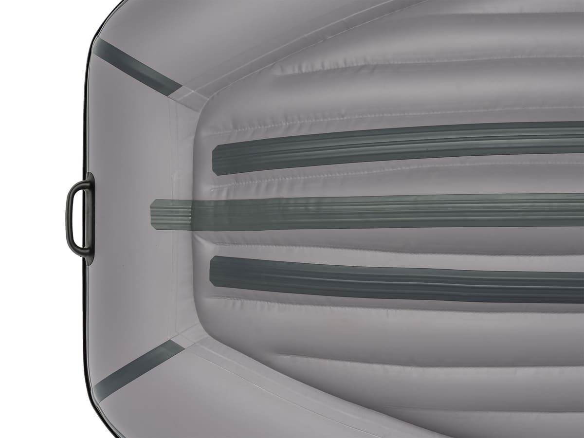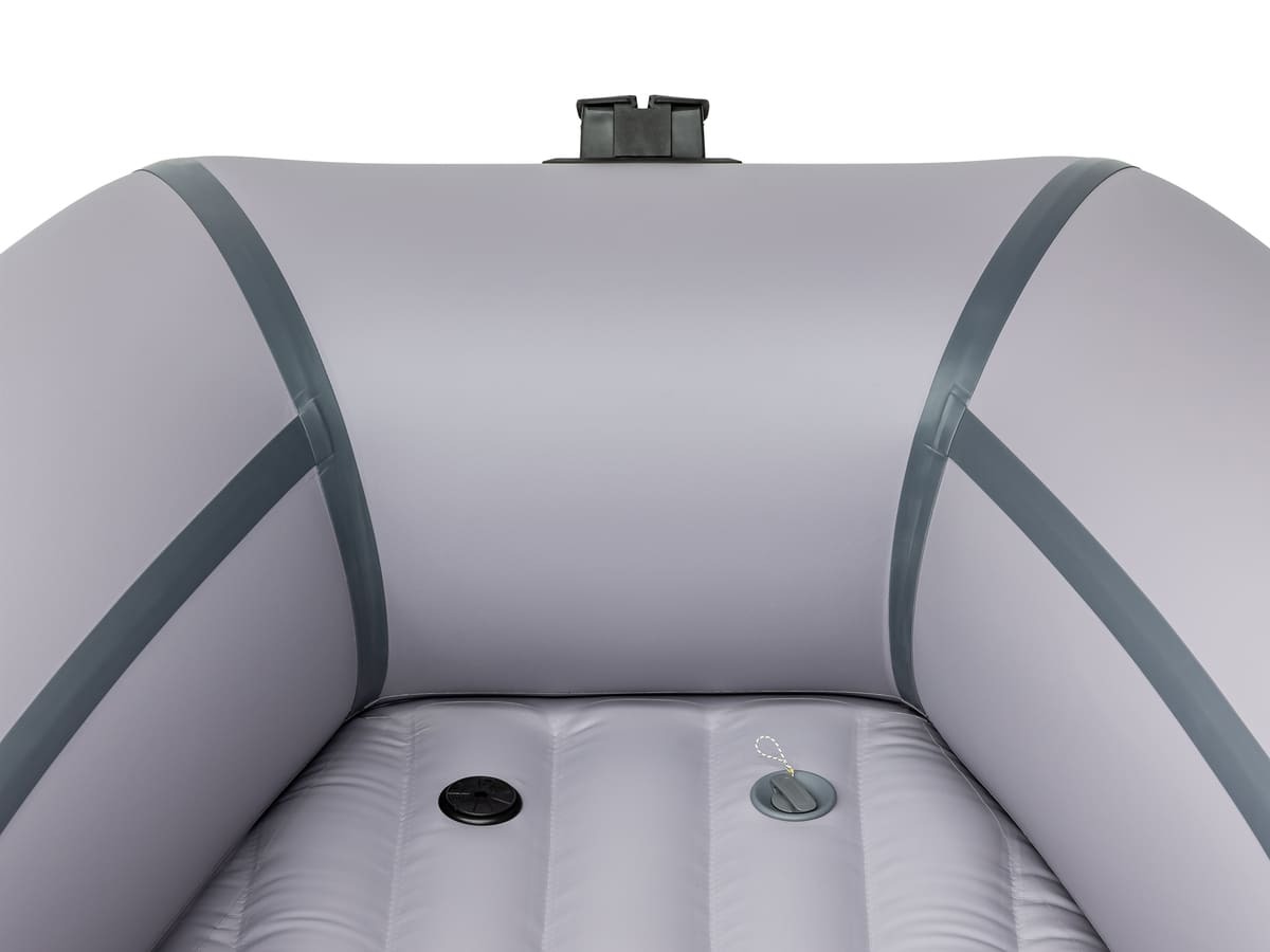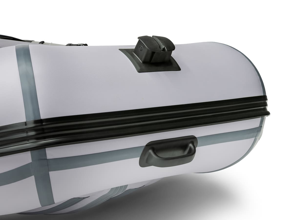 Лодка ПВХ Андромеда Air 340 идеально подойдёт для комфортной рыбалки 3 человек. Конструкция лодки выполнена в виде 3-секционного баллона, а отдельный надувной отсек значительно улучшает скоростные характеристики модели. Материал производства — высокопрочный ПВХ плотностью 1000 г/кв.м на баллонах и 1100 г/кв.м на днище. Материал с двусторонним полимерным покрытием, а также с добавлением термопластичного полиуретана. Это значит, что лодка готова к большим перепадам температур и спокойно выдержит рыбалку даже на 30-градусной жаре. Общая грузоподъёмность лодки составляет 550 кг, при собственном весе всего 38 кг. Для дополнительной безопасности модель оснащена подрывным и сливным клапанами, а оптимальная мощность мотора для Андромеда Air 340 составляет 9.9 л. с.