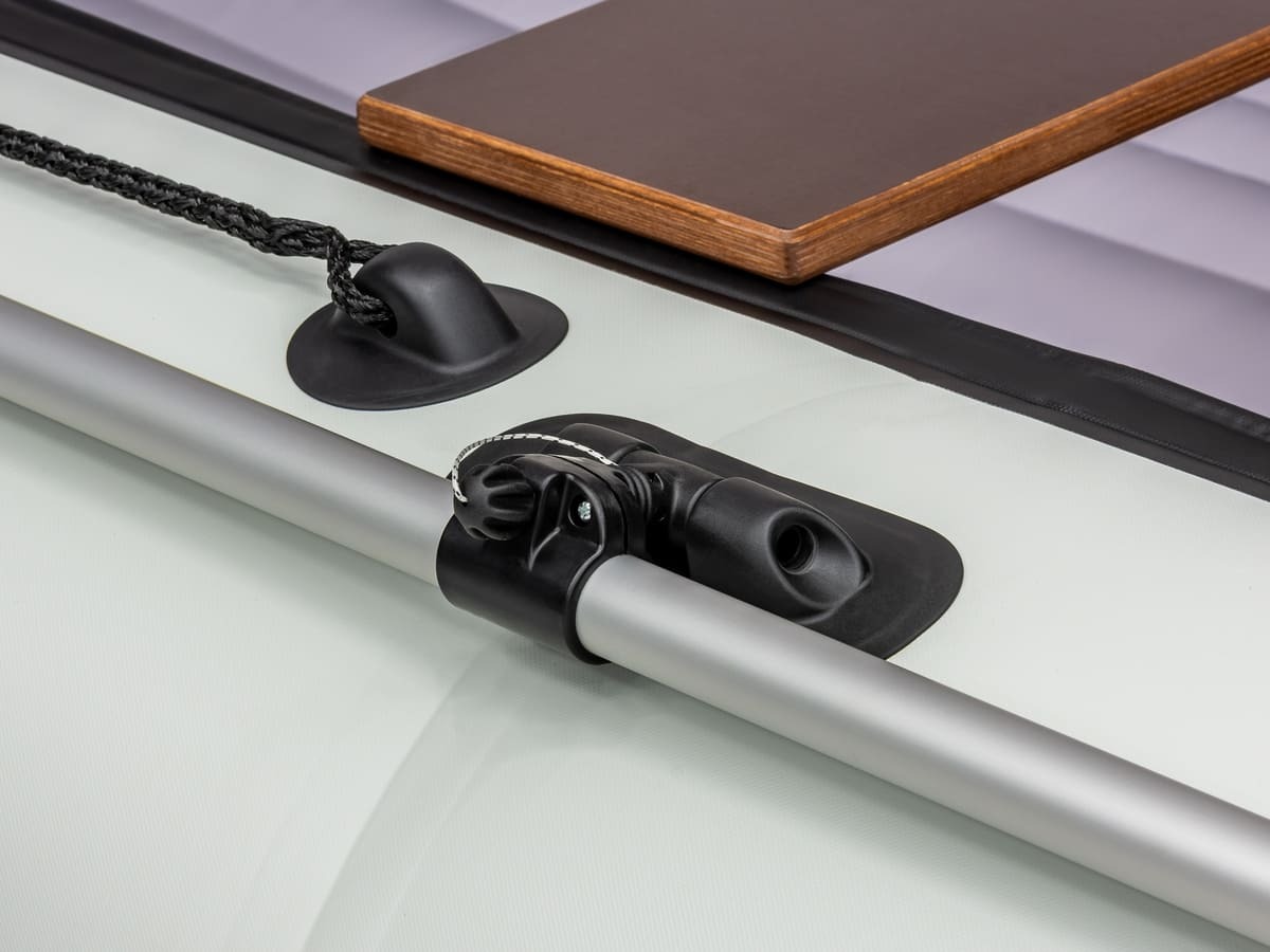 Отдельного внимания заслуживает фурнитура, которая используется на всей линейке Андромеда Air. Компания располагает собственной базой для литья пластмасс, укомплектованной австрийским и итальянским оборудованием. Фурнитура изготавливается на современном термопластавтомате. В производстве используются только высококачественные полимеры проверенных производителей. Ручки, шайбы, пластиковые элементы весла и поворотной уключины, фиксаторы сидений, держатели транца и концевики баллона разрабатывались специально для условий повышенных нагрузок, имеют хорошие показатели испытаний на разрыв и излом.