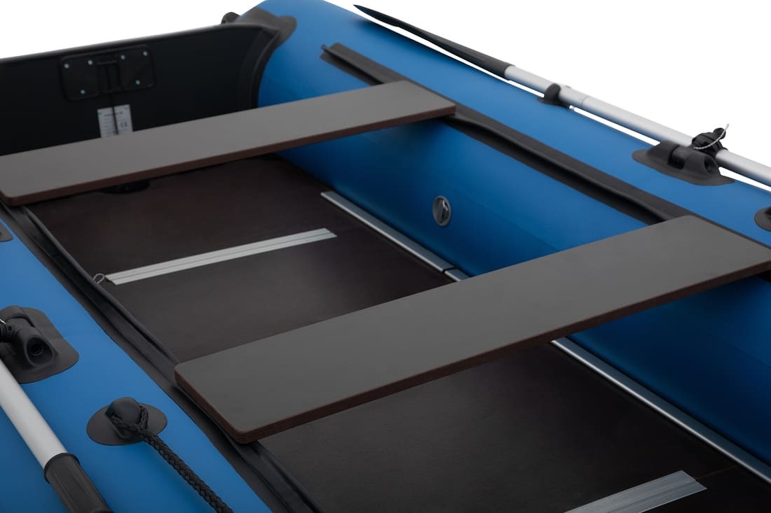 Матрица материала ПВХ выполнена из полиэстровых волокон, который отличается гораздо большей упругостью и меньшей истираемостью по сравнению с нейлоновыми. Это не только улучшает живучесть лодок, но и значительно повышает их мореходные характеристики, ввиду меньшей деформации и сопротивления
