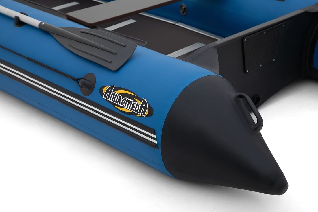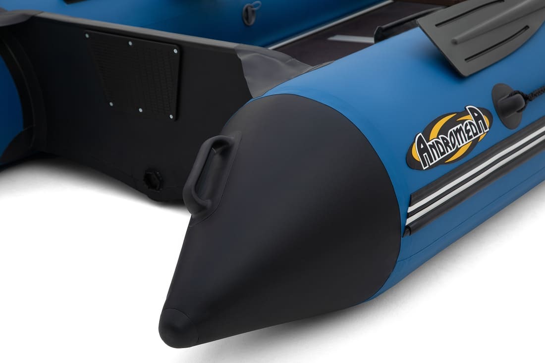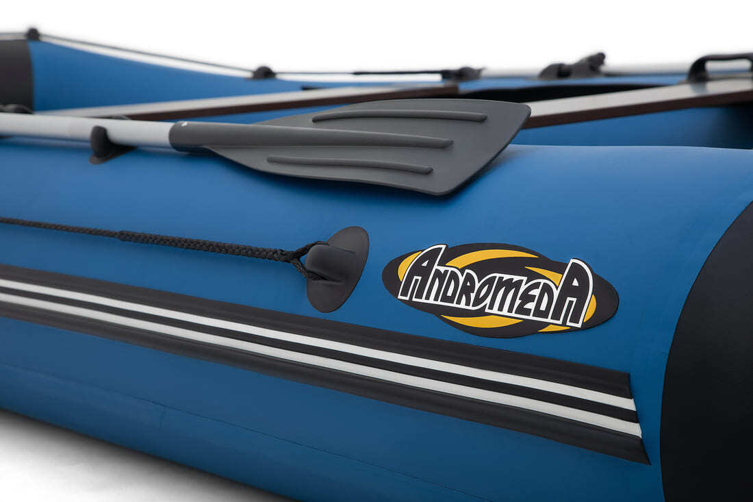 В изделии применены все самые лучшие технические и технологические достижения, которые позволяют лодке развивать высокую скорость и обладать отличной маневренностью и управляемостью, обеспечивать высокую остойчивость и другие характеристики, что в целом отвечает самым высоким критериям надежности и безопасности. Весь модельный ряд лодок «Андромеда (Andromeda)» оснащается высококачественной фурнитурой собственного производства. Ручки, шайбы, пластиковые элементы весла и поворотной уключины, фиксаторы сидений, держатели транца и концевики баллона разрабатывались специально для условий повышенных нагрузок, имеют хорошие показатели испытаний на разрыв и излом.