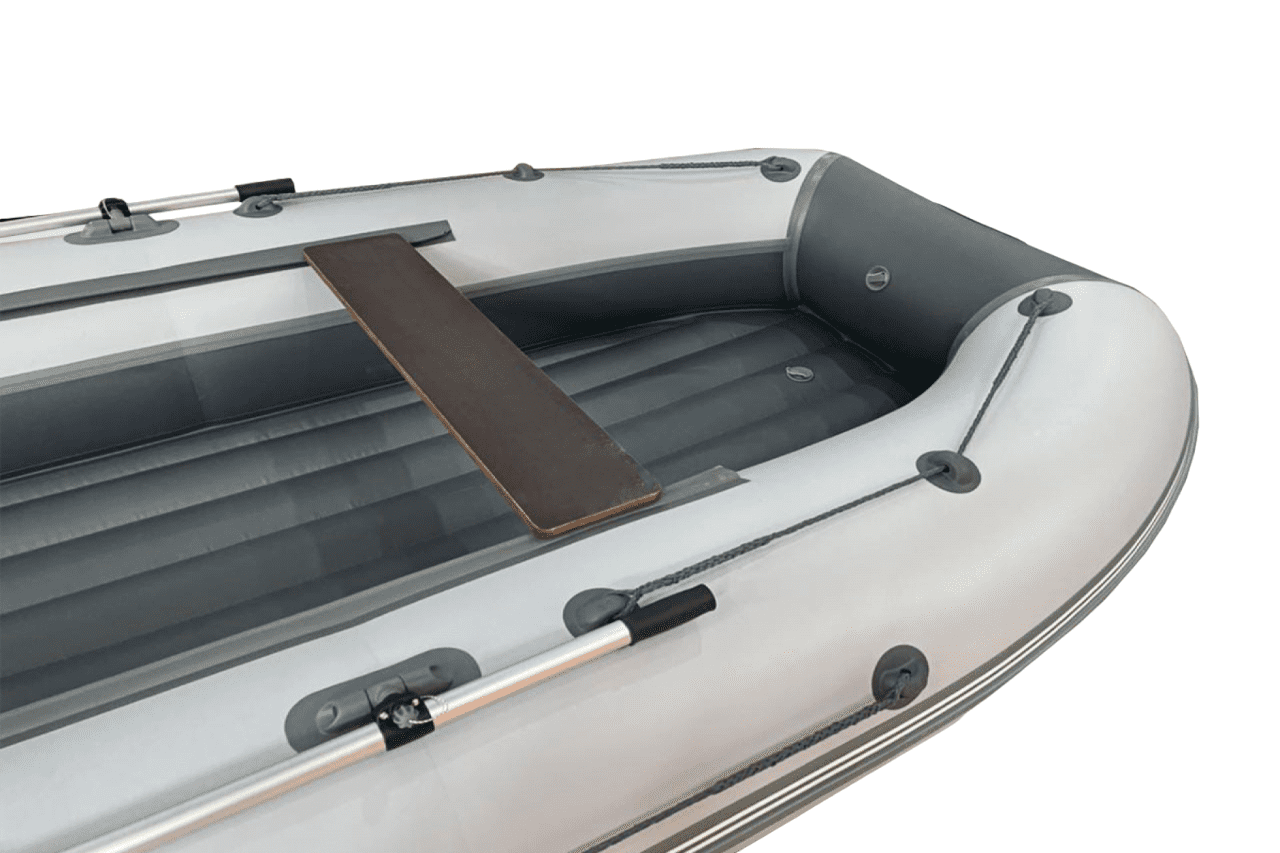 Каждая лодка укомплектована удобными и практичными лавками, которые свободно можно перемещать вдоль борта лодки. Также в стандартную комплектацию лодки входят весла длиной 1,6 м, которые в свою очередь можно заменить за дополнительную плату на разборные весла длиной 2 м. Тип пайола лодки – надувное дно низкого давления, но для создания дополнительной жесткости дна идеально подходит ЭВА-коврик. Кроме того, наша компания готова предложить следующие комплектующие: