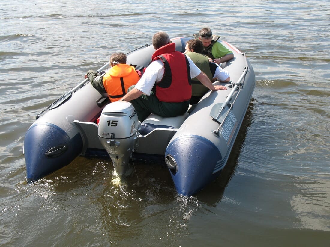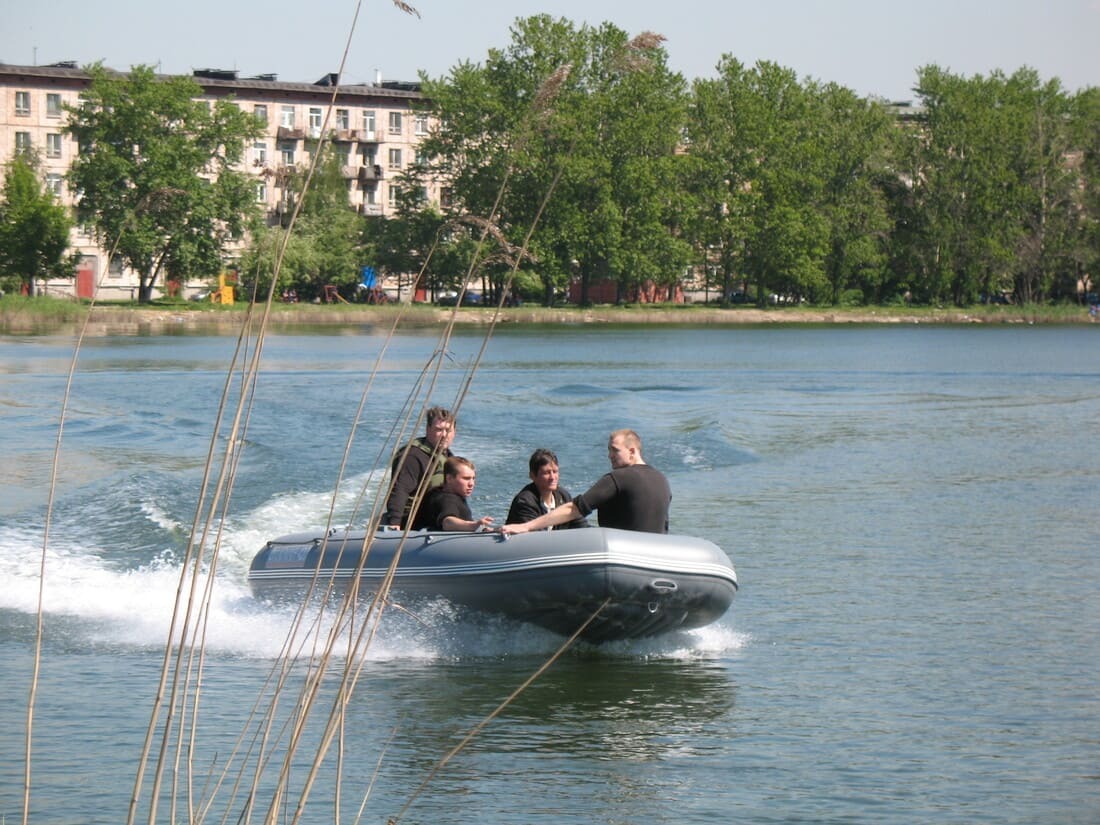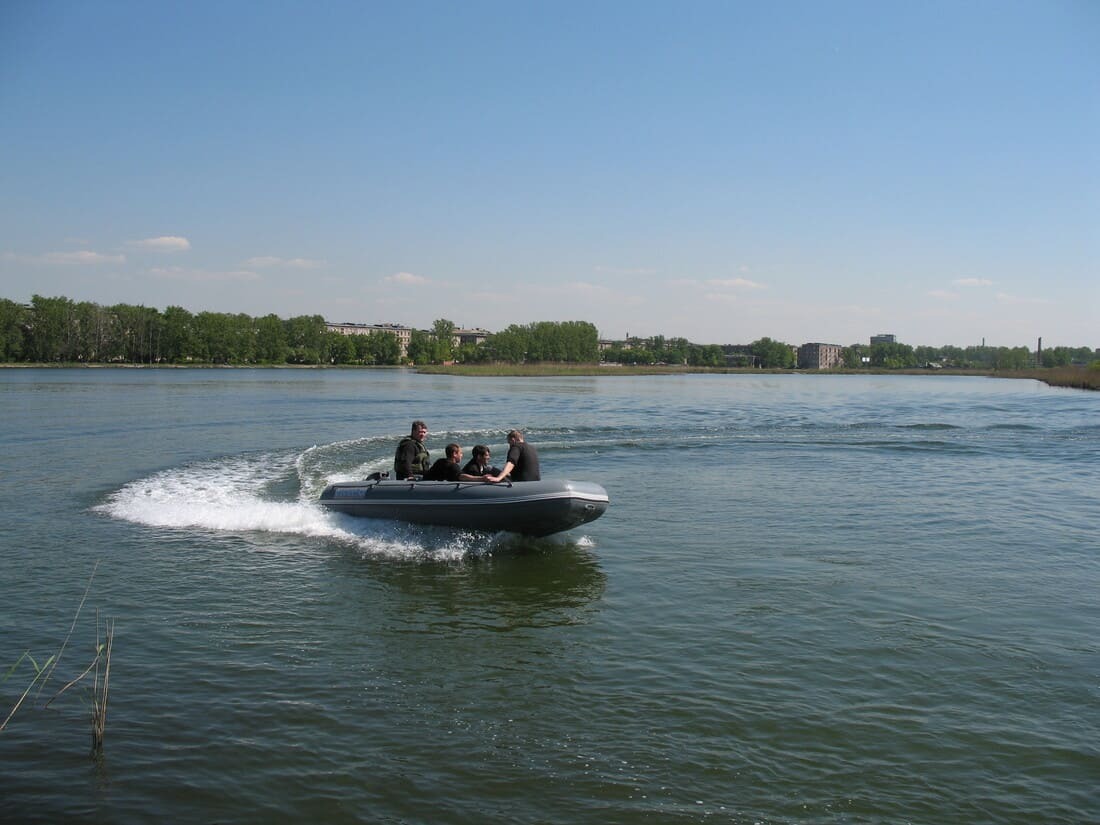 Под мотором 15 л/с. со стандартным винтом лодка с двумя людьми развивает скорость 40 км.ч., под мотором 10 л/с. со стандартным винтом лодка с двумя людьми развивает скорость 36 -37 км.ч.. Результаты можно улучшить отрегулировав угол наклона ноги мотора на транце и установкой спортивного или грузового винта.