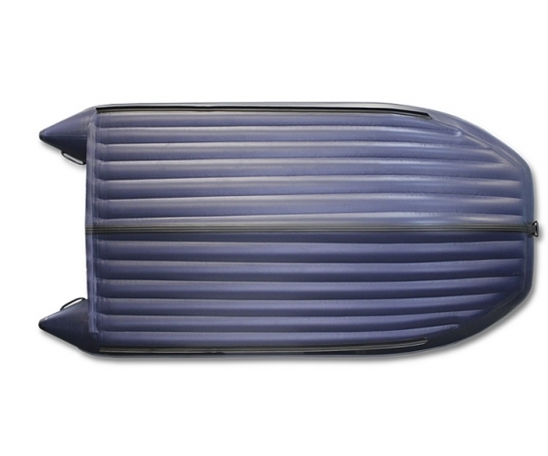 Надувное килевое дно в двухкорпусных судах может соответствовать внешней ширине судна. В такой конструкции можно легко формировать любые обводы дна, которые присущи классическим обводам жёстких маломерных судов, конечно, с поправкой на особенности надувных напряжённых оболочек. Это, так называемое, крыло чайки и днище баркасного типа и многие другие типы обводов. При этом площадь днища позволяет устанавливать реданы, которые будут работать в запланированном диапазоне.