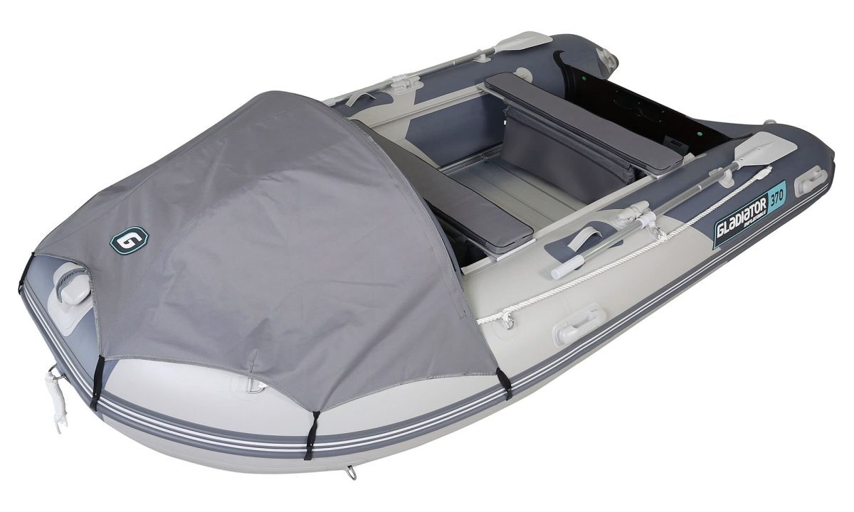 Гладиатор D370AL ― прочная и надёжная лодка для самых суровых условий с расширенной комплектацией (мягкие накладки на сиденья, сумки под сиденья и носовая сумка, носовой тент, дополнительное надувное сиденье-баллон). Лодка рассчитана на 5 пассажиров с грузом. Максимальная мощность мотора ― 30 л.с.. Ровная палуба обеспечивается алюминиевым пайолом с усиленными стрингерами. Надувной киль улучшает мореходность. Дно лодки усилено бронированием баллонов и надувного киля. На носу установлен удобный якорный рым-утка. По борту проходит привальная лента.