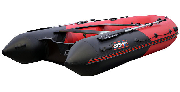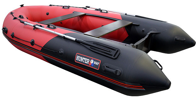 Надувная лодка Хантер 380 с разборным жестким пайольным дном, рассчитана на использование с мотором до 25 л.с. с максимальной загрузкой до 750 кг. Предназначена для рыбалки, охоты и активного отдыха на воде небольшой компанией. Выпускается, пока, только в комбинированном красно/черном цвете.