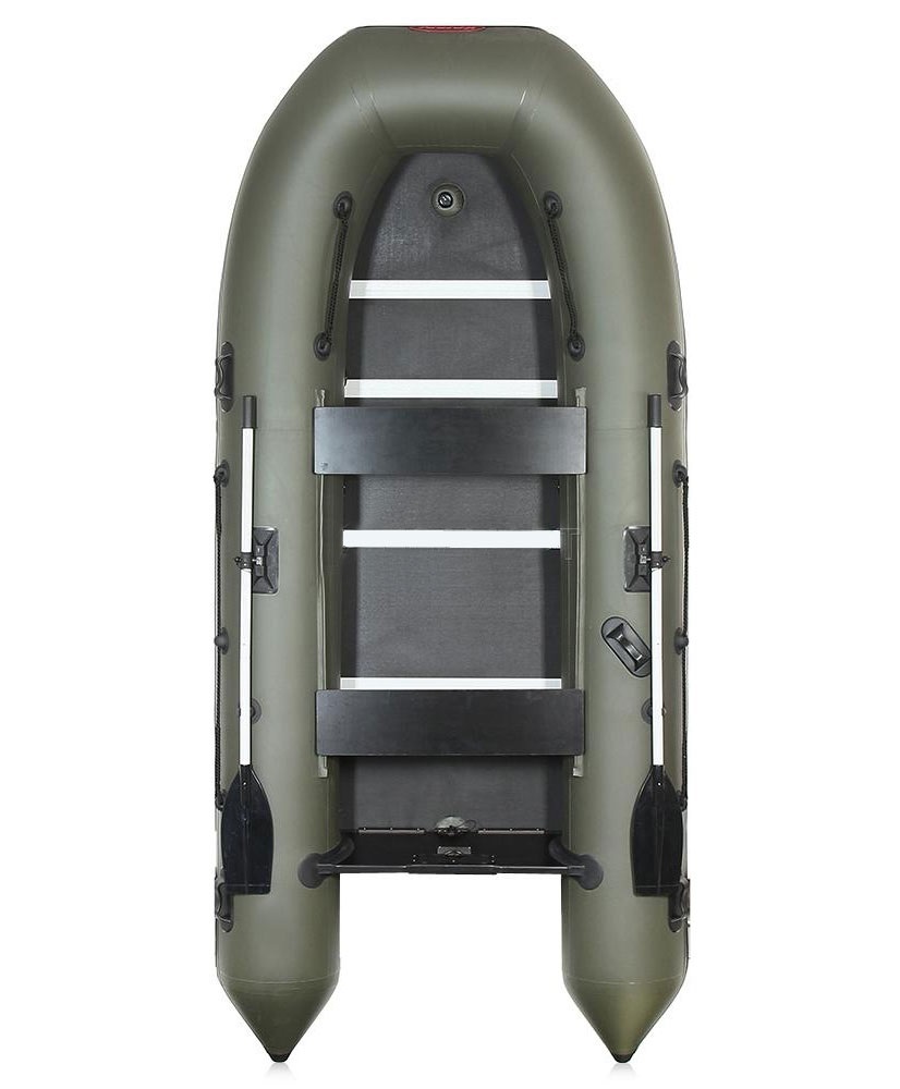 Плавные обводы корпуса и высоко приподнятый нос данной модели позволяют развивать высокую скорость при использовании подвесных моторов даже средней мощности при максимальной загрузке кокпита. Жесткая палуба с полным набором алюминиевых профилей поперечной и продольной жесткости в совокупности с надувным кильсоном позволяет получить идеальное натяжение дна лодки, глубокую правильную килеватость, и, как следствие, замечательные мореходные показатели.