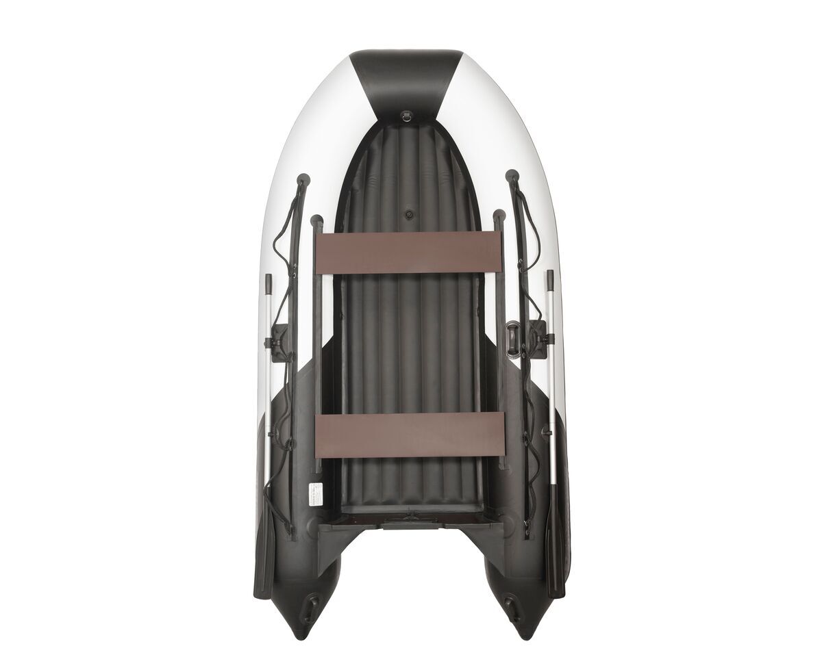 Килевая моторная лодка с НДНД (надувное дно низкого давления) реданного типа. Особенности конструкции реданов, разработанные конструктором завода позволили повысить эксплуатационные свойства и исключить разрыв перегородки. Лодка с таким дном имеет мягкий ход по волне и более высокие скоростные качества по сравнению с лодками с жестким дном. Весят они меньше (от 5 до 11кг) , просто и легко собираются и разбираются, удобны в транспортировке. У них выше устойчивость на волне и грузоподьемность. НД НД является хорошим теплоизолятором, что удобно при длительном нахождении на воде. Днище лодок дополнительно усилено ПВХ профилем шириной 60 мм по баллонам и килю. Упакована в конверт с лямками для переноски. Транспортная упаковка -картонный короб.