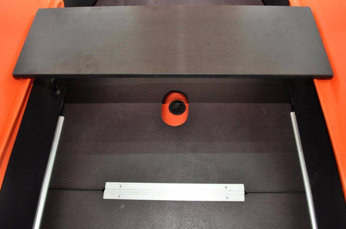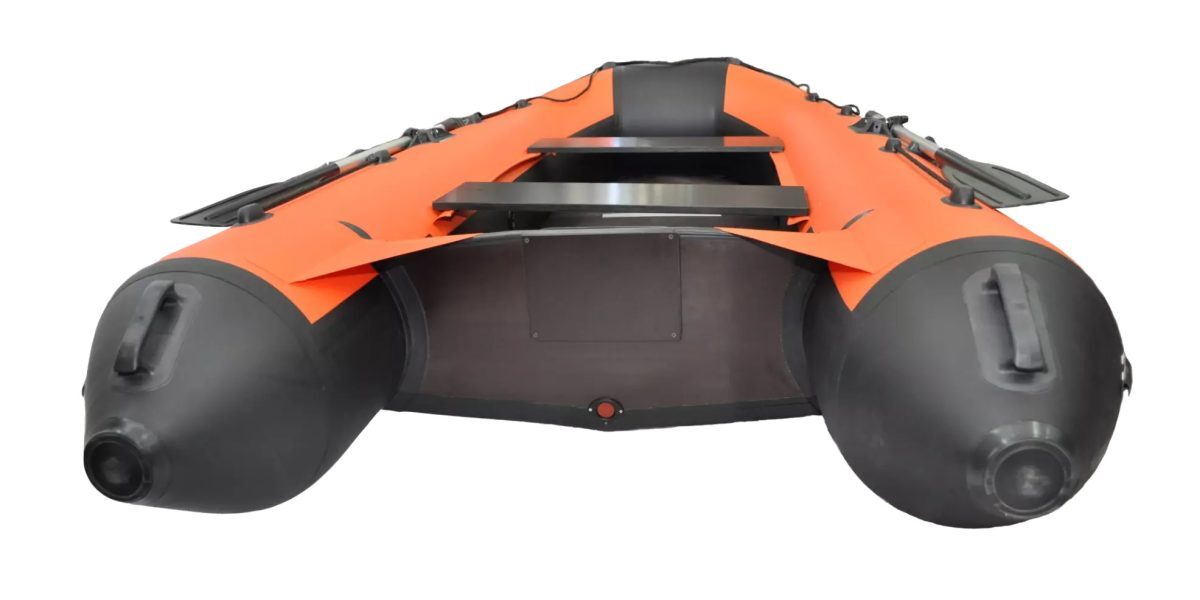 Еще одна особенность модели - жесткий настил-книжка из фанеры. Им легко пользоваться, нужно просто расстелить на днище, а после плавания - свернуть. Теплый деревянный пол обеспечит комфорт босым ногам летом, и послужит теплоизолирующей прослойкой в прохладную погоду. Кроме того, настил делает корпус жестче. На такой палубе можно стоять и перемещаться. Можно использовать лодку и для рыбалки. В ней будет комфортно рыбачить в заброс двум рыбакам, в просторном кокпите шириной 117 см и длиной 277 см найдется место для снастей и богатого улова. Мотор позволит уплыть к самым потаенным местам с хорошим клевом.