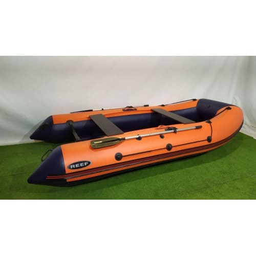 Надувная моторно-гребная лодка REEF 360НД имеет надувное днище низкого давления. Данный вид днища позволяет значительно сократить время на сборку/разборку лодки. Еще одним преимуществом является уменьшение веса лодки и более компактная упаковка в одну сумку. Мотор, устанавливаемый на REEF 360НД должен иметь мощность не больше 25 л.с.