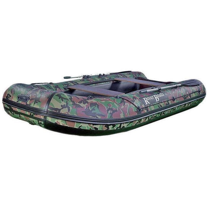 Надувная лодка ПВХ RiverBoats RB-330 + Алюминиевый пол, длиной 330 см. и шириной 158 см. Имеет баллоны диаметром 44 см. Предназначена для четырех человек, общая грузоподъемность 430 кг. Возможна установка мотора мощностью до 15 л.с.
