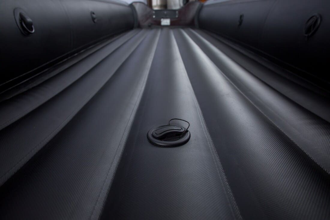 - Надувное дно низкого давления — НДНД. Лодка полностью готова к использованию за 20 минут работы ножной помпой (или до 10 минут — электрическим насосом). Надувное дно уменьшает осадку лодки и позволяет легко проходить пороги и мелководные участки. При движении надувное дно не прогибается, обеспечивая хорошую мореходность и смягчает (амортизирует) удары волн, повышая комфорт пассажиров. Являясь дополнительным воздушным отсеком, дно увеличивает грузоподъёмность и надёжность лодки.