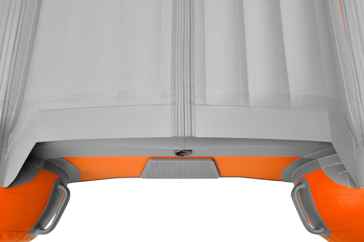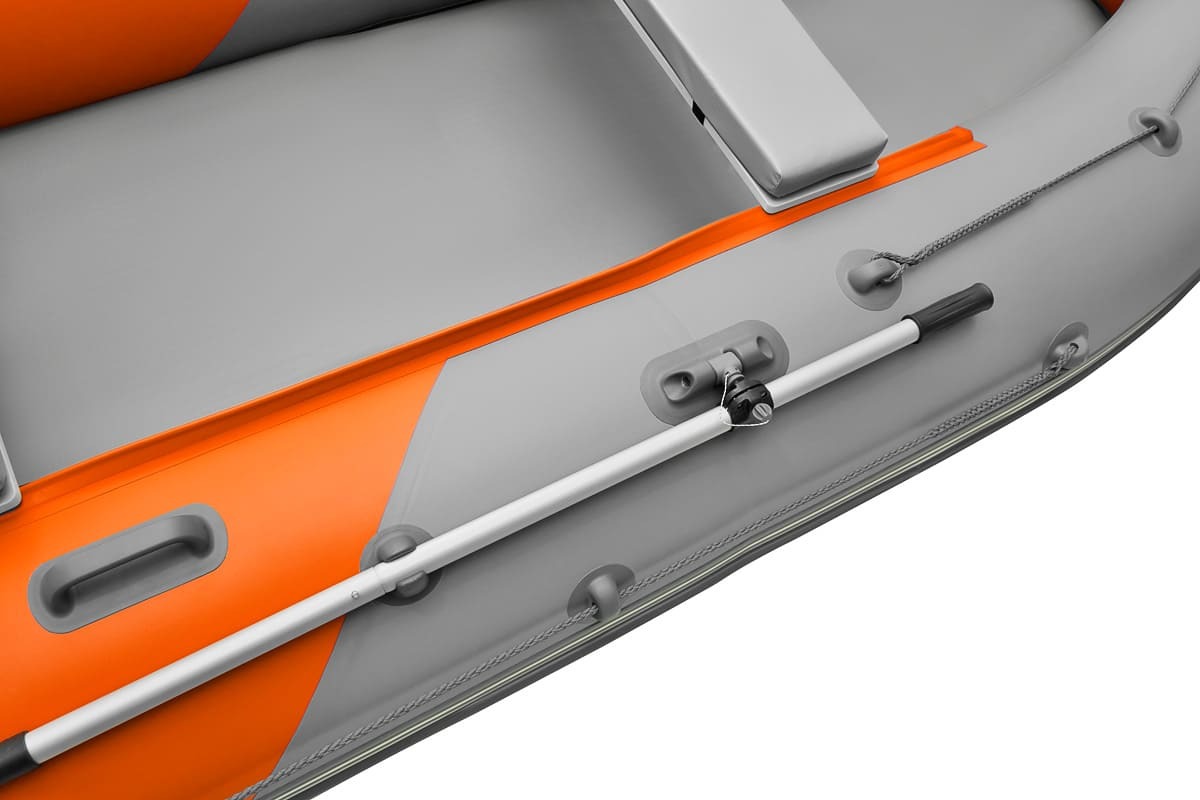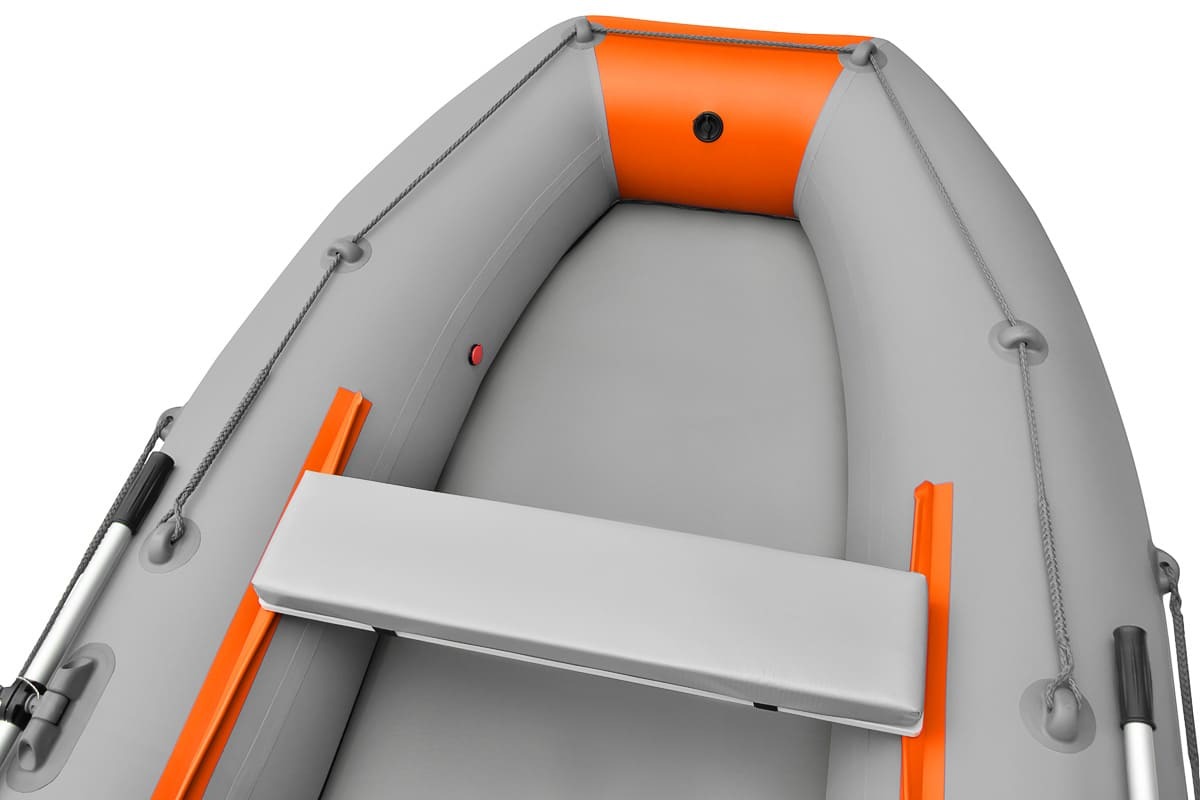 Неразборный корпус лодки и дна позволяет произвести сборку и разборку быстро, и не займет у Вас много времени и сил, Вам останется только наполнить надувные секции воздухом, и Ваша лодка готова к эксплуатации, время сборки лодки менее 15 минут. Независимые отсеки надувного дна, при наполнении их воздухом преобразуют дно в V - образную форму, что дает лодке превосходную управляемость по волне, а смещенный транец - просторный кокпит и небольшой вес лодки