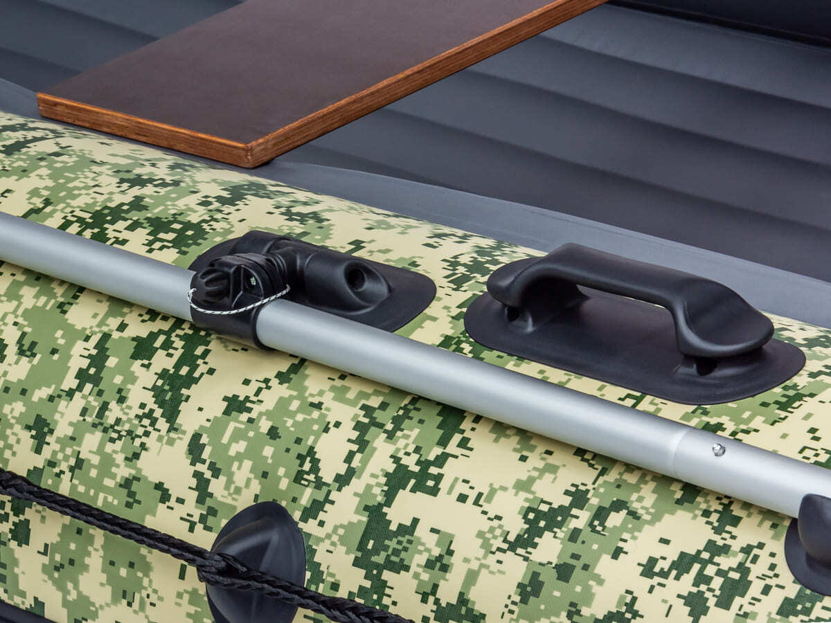 Надувная лодка «Stormline Expedition» изготовлена из высокопрочной синтетической ткани с двусторонним полимерным покрытием ПВХ с добавлением термопластичного полиуретана. Применяемая ткань экологически безопасна, имеет высокие прочностные и климатические характеристики. Конструкция лодки исполнена в виде 3-х секционного надувного баллона. Для придания килевой формы используется надувное дно низкого давления с перегородками создающий жесткость палубы по всему периметру. Данные лодки отличаются максимальной вместительностью, увеличенной шириной кокпита, премиальное ПВХ 1200-1400гр м2, что в совокупе с размером дает преимущество при выборе клиента для максимально суровых условий эксплуатации