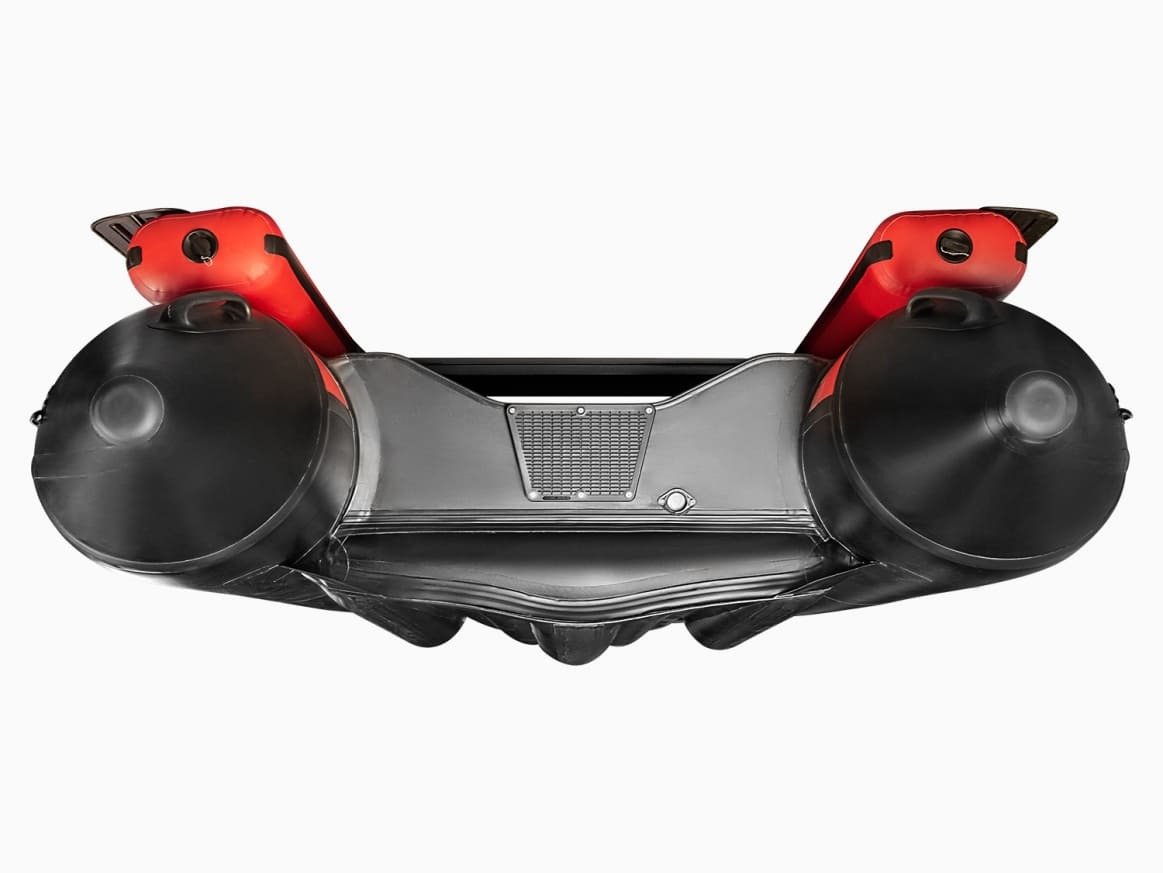 На фото изображена лодка в красно-черном исполнении. Можно заказать лодку и в других расцветках: серо-черную, бело-черную, бело-серую.