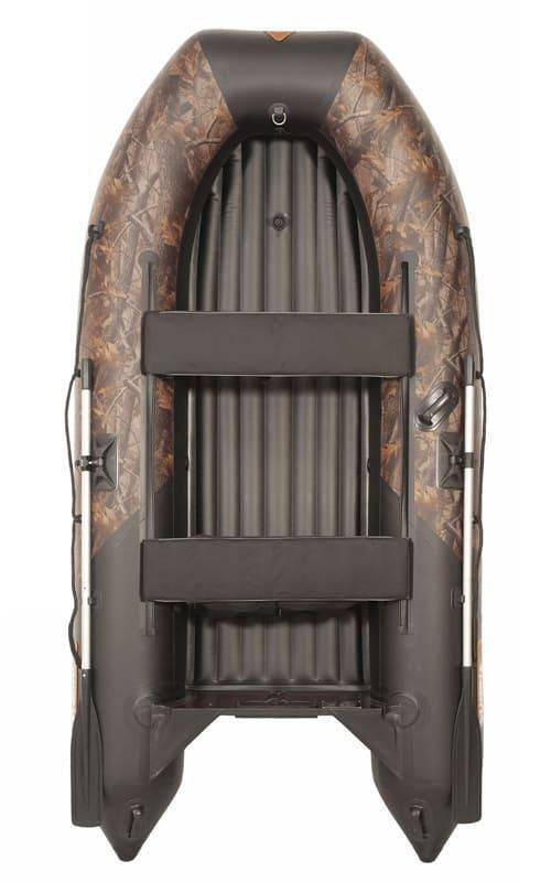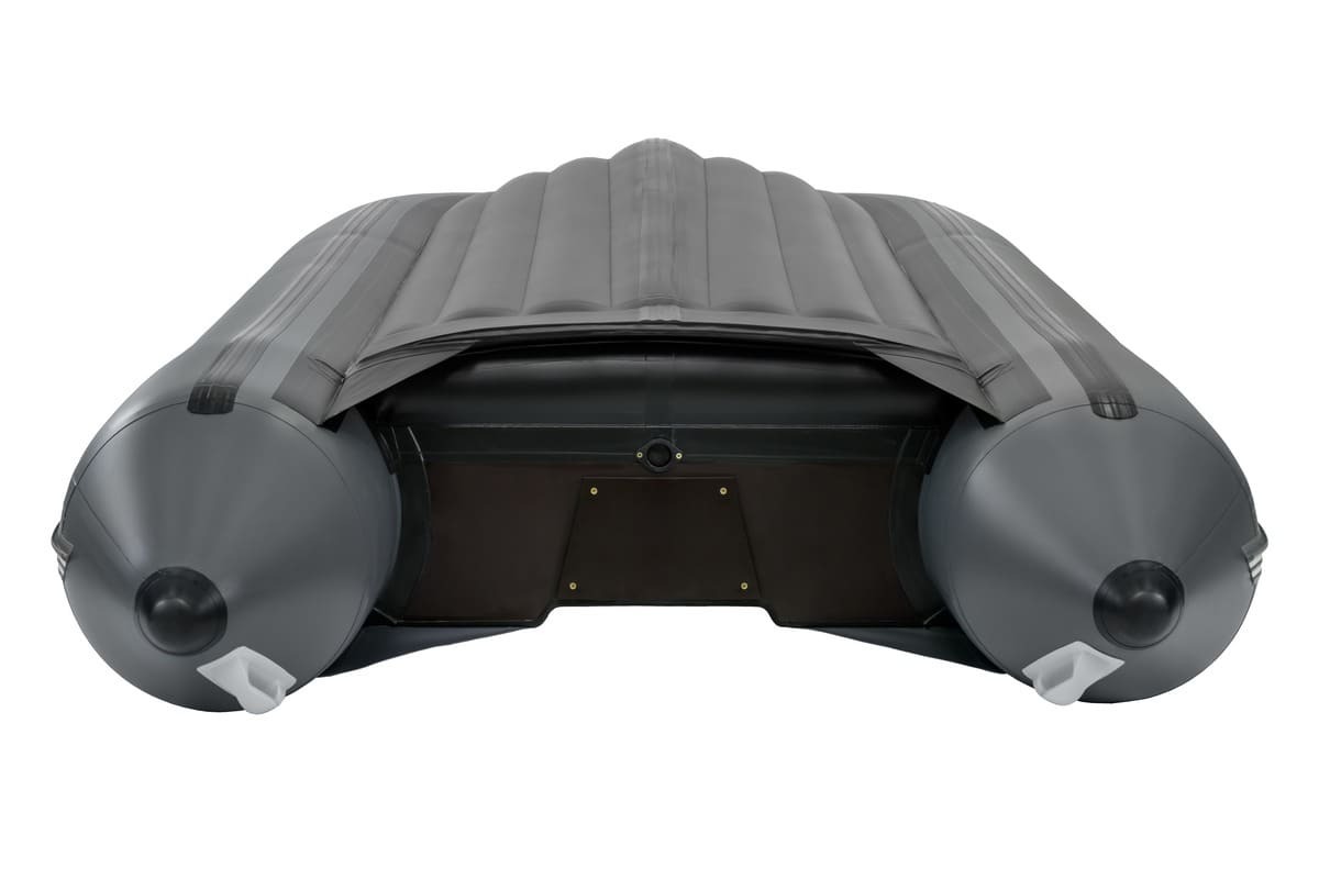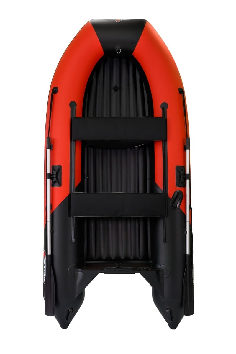 Надувное V-образное дно моторных лодок Юкона серии НДНД образованное комплектом продольных переборок и вклеенная в корпус надувной лодки, обеспечивает необходимую жесткость днища и минимальное гидродинамическое сопротивление, высокие скоростные характеристики. Это позволяют моторной лодке размером 300,320,340,350,380 быстро выходить на глиссирование с лодочным мотором мощность от 10 л.с.
