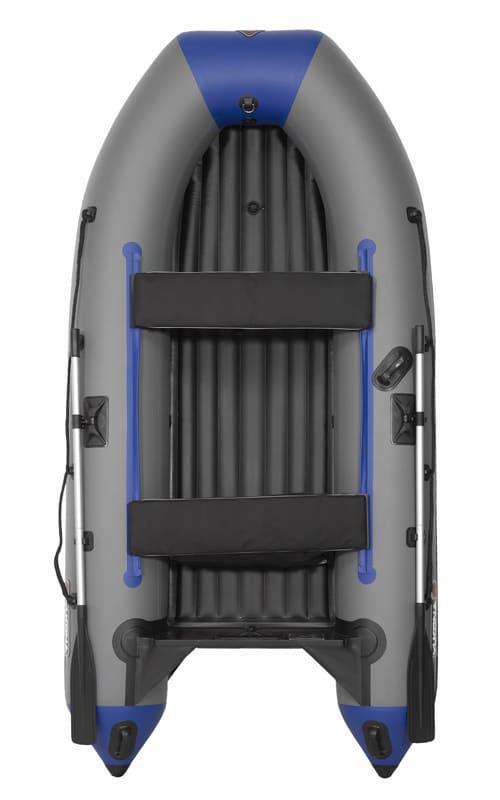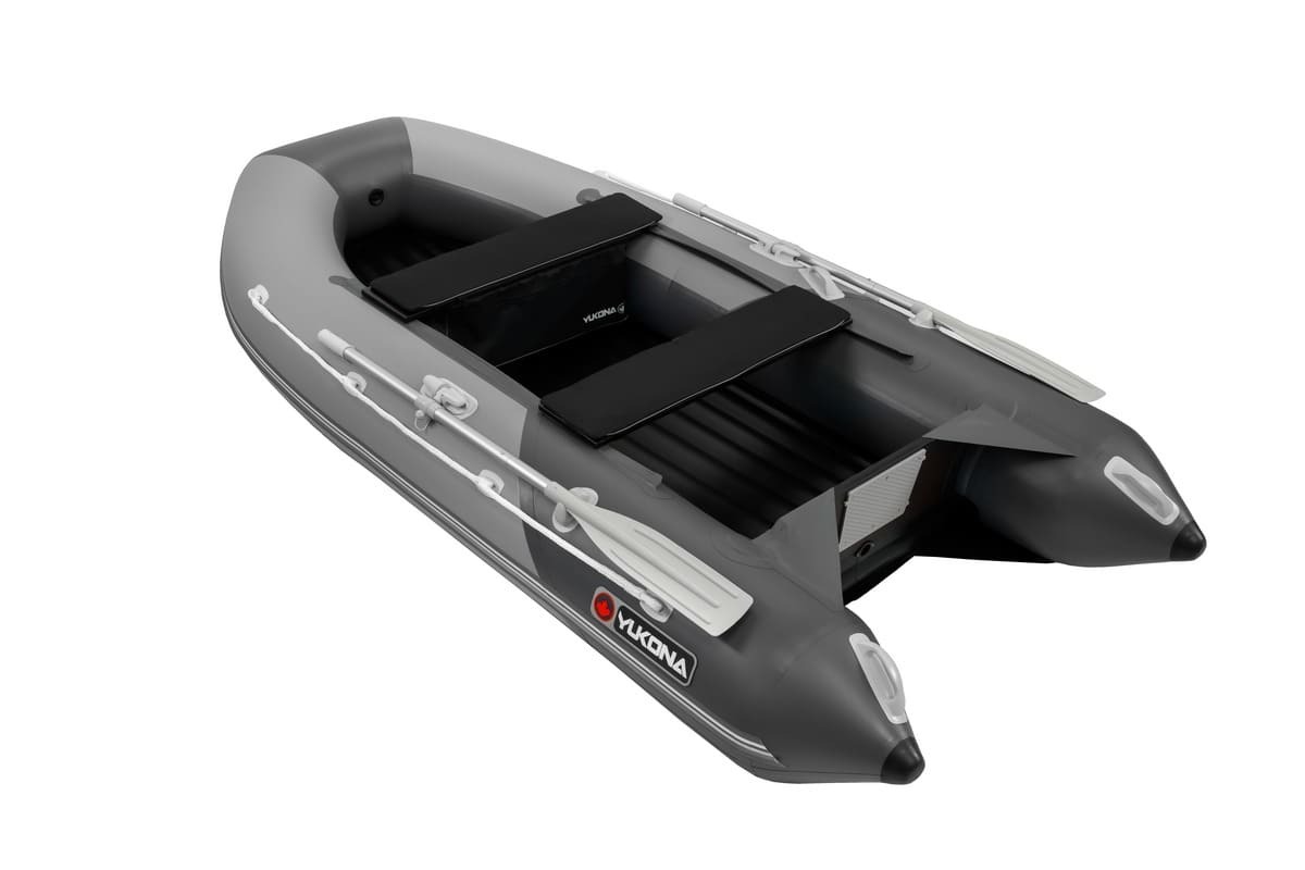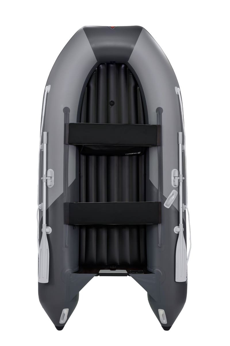 Надувное V-образное дно моторных лодок Юкона серии НДНД образованное комплектом продольных переборок и вклеенная в корпус надувной лодки, обеспечивает необходимую жесткость днища и минимальное гидродинамическое сопротивление, высокие скоростные характеристики. Это позволяют моторной лодке размером 320,350,380 быстро выходить на глиссирование с лодочным мотором мощность от 10 л.с.