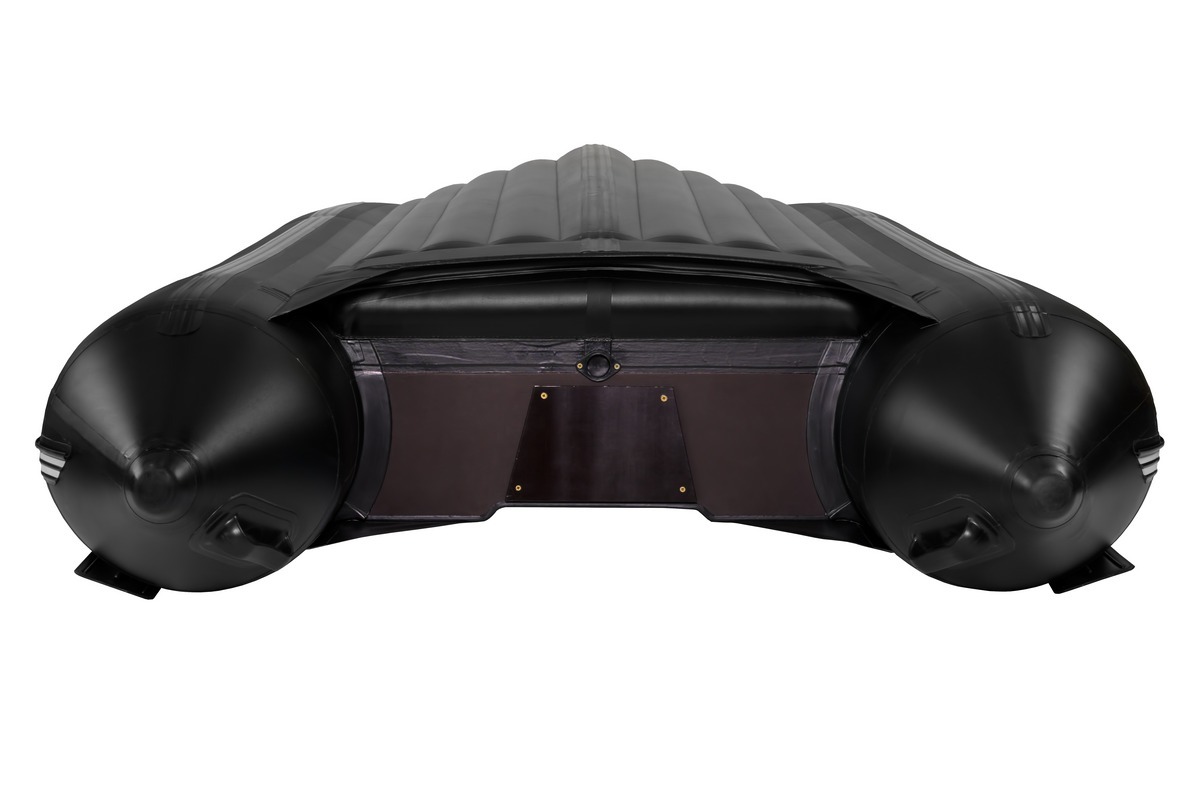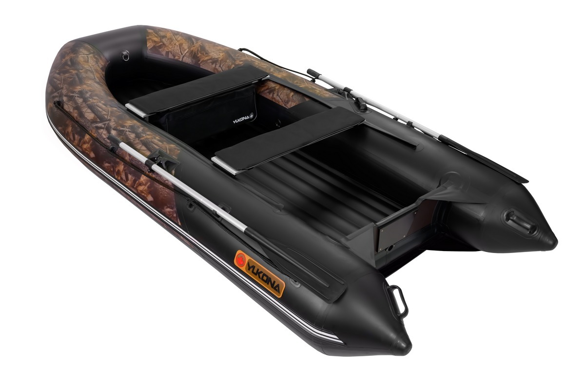 Надувное V-образное дно моторных лодок Юкона серии НДНД образованное комплектом продольных переборок и вклеенная в корпус надувной лодки, обеспечивает необходимую жесткость днища и минимальное гидродинамическое сопротивление, высокие скоростные характеристики. Это позволяют моторной лодке размером 320,350,380 быстро выходить на глиссирование с лодочным мотором мощность от 10 л.с.
