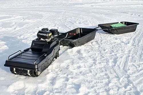 Всесезонный мотобуксировщик Джек предназначен для перевозки небольших грузов и людей по акватории замерзших водоёмов и снежному покрову не более 27 см. Эта модель мотобуксировщика простая в управлении и даже не требует водительских прав и регистрации.