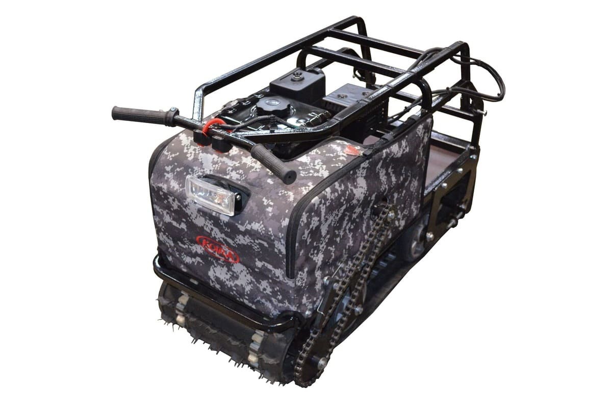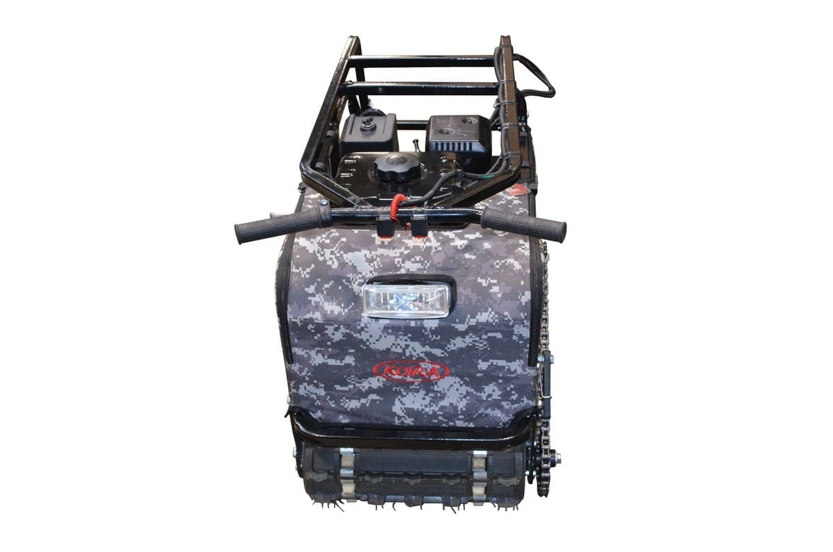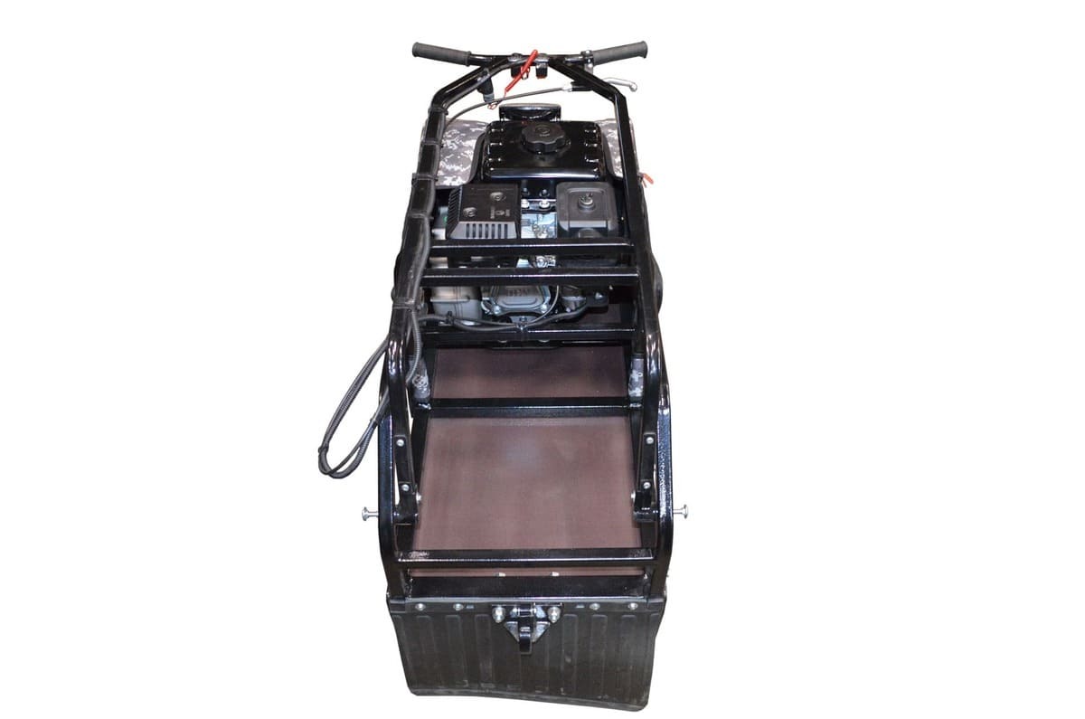 Мотобукс выпускается с гусеницей шириной 380 мм, которая изготовлена из прочного материала, что обеспечивает достаточное сцепление с любой дорогой (особенно, это важно для льда) и надежную работу в зимних условиях. Широкая поверхность равномерно распределяет вес, предотвращая проваливание в снег.