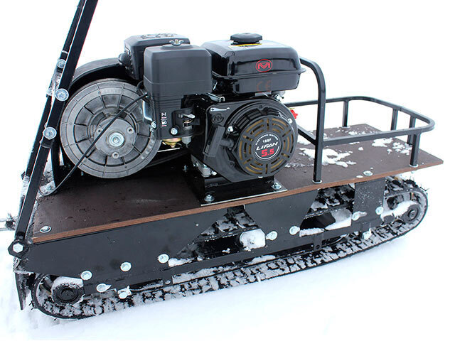 Буксировщик оснащен 4-х тактным двигателем мощностью 15 л. с., достигающий скорость до 40 км/ч. Это позволяет быстро перевозить груз до 250 кг в санях и на специальной багажной площадке мотобуксировщика. Объем двигателя составляет 420 кубов.