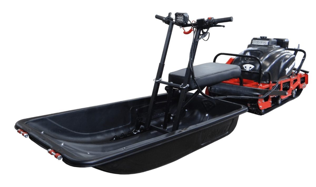 Буксировщик оснащен 4-х тактным двигателем мощностью 15 л. с. и объемом 420 кубов, достигающий скорость до 40 км/ч. Это позволяет быстро перевозить груз до 300 кг на специальной багажной площадке мотобуксировщика. Также есть возможность установить сани к мотобуксу, что позволит перевозить дополнительно до 400 кг.