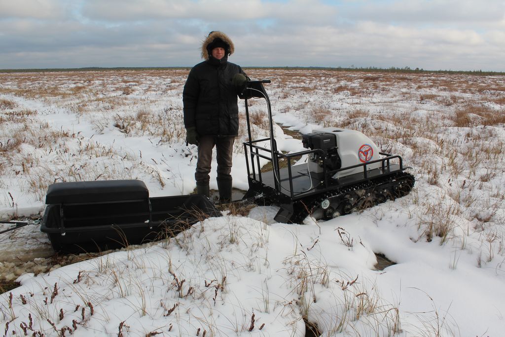 Буксировщик производится с компактной задней площадкой для перевозки личных вещей, инструментов, рыбацких снастей и прочих необходимых мелочей охотнику или рыбаку. Техника оснащена яркой фарой, которая позволяет пользоваться транспортом даже в темное время суток. Морозо- и вибростойкий капот с чехлом карбюратора и пластинами утепления - максимально защищает ДВС от обледенения и от возможности лопнуть.