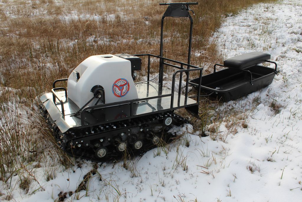 Всесезонный мотобуксировщик Ураган Классика идеально подходит для перевозки крупных грузов, так как на нем стоит мощный движок и он отлично сохраняет тягловое усилие. Компактные размеры и простое управление делают этот мотобуксировщик незаменимым для охоты, рыбалки, туризма и других приключений на снежных или заболоченных территориях.