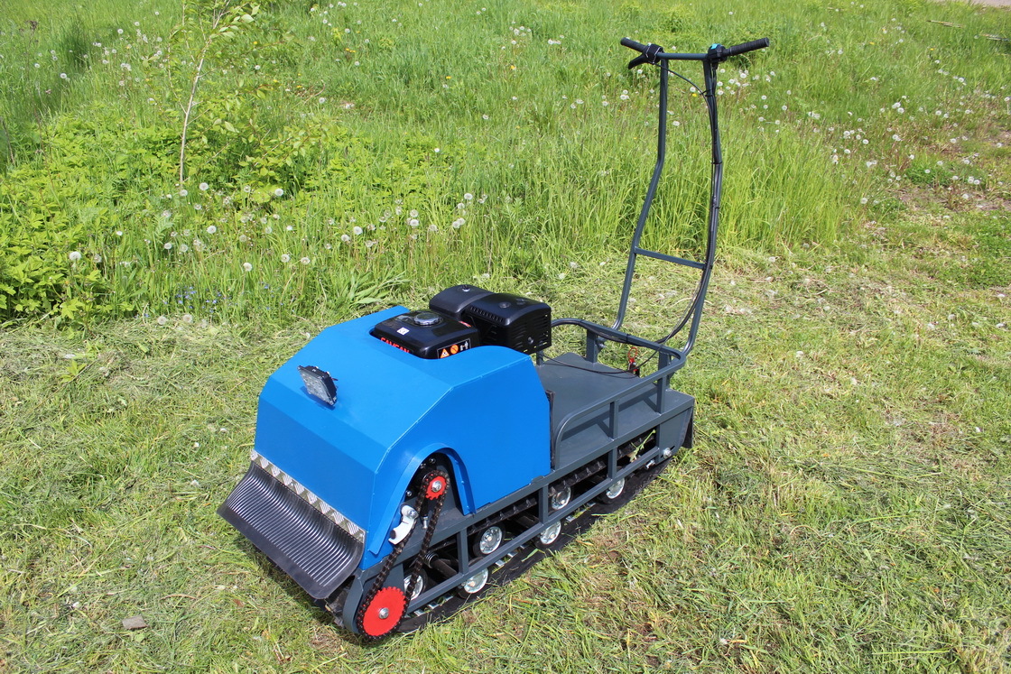 Модель оснащена гусеницей шириной 500 мм. Гусеница в сочетании с катковой подвеской способна проходить спокойно по льду и даже по территории без снега.