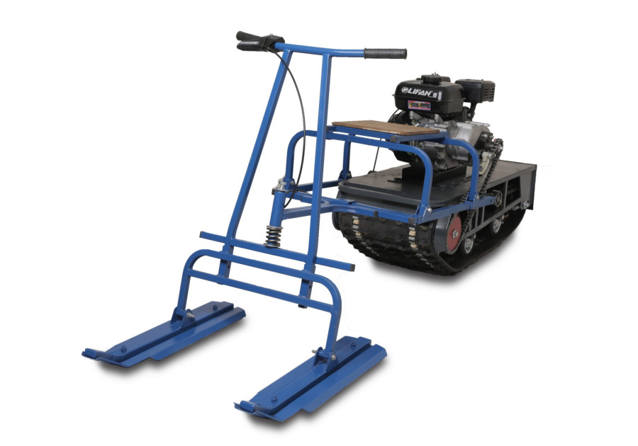 На мотобуксе установлена катковая подвеска. Катки устанавливаются на оси и предназначены для смягчения ударов и вибраций, возникающих при движении по неровной местности. Подвеска также способствует лучшей проходимости и устойчивости мотобуксировщика, обеспечивая более комфортное и безопасное передвижение как в сельской местности, так и на дорогах.