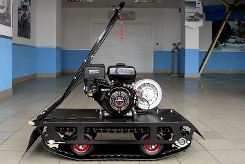 Этот мотобукс оснащен 4-х тактным двигателем мощностью 9 л. с., что позволяет достигать скорости до 45 км/ч. Это позволяет быстро перевозить груз весом до 200 кг. Объем двигателя составляет 270 кубов. Кроме того, мотовездеход оснащен топливным баком на 6 литров. Расходуя до 3 литров бензина в час, мотобуксировщик дает возможность до 2-х часов беспрерывной работы.