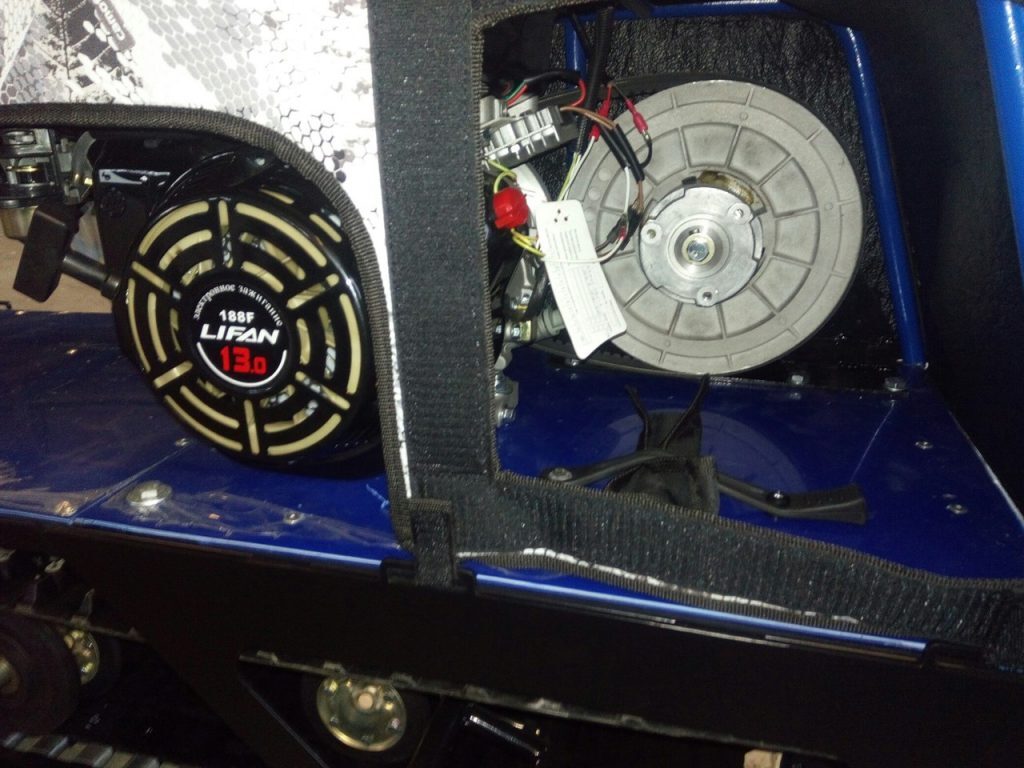 В конструкции мотовездехода используется цельная резиновая гусеница шириной 500 мм. Площадь опоры гусеницы улучшает тяговые характеристики, проходимость и устойчивость буксировщика.
