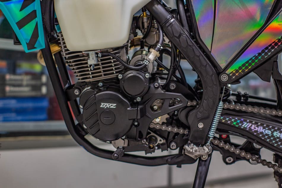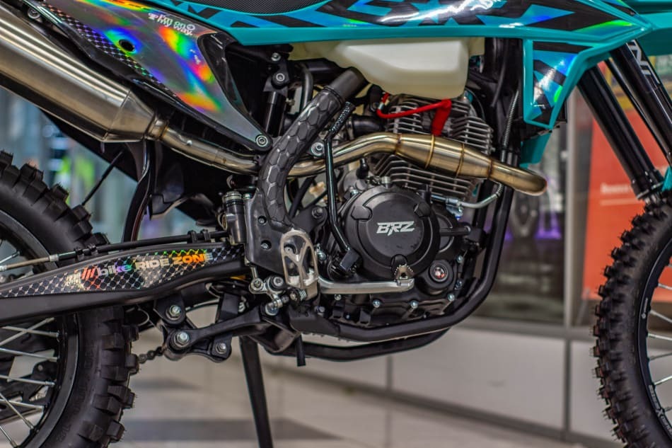 Мотоцикл BRZ X5MT представляет собой идеальное сочетание мощности, скорости и дерзкого дизайна. Оснащён пятиступенчатой коробкой передач и надёжным двигателем мощностью 21 л.с, что обеспечивает плавное ускорение и скоростную езду. Модель имеет прочную и лёгкую раму, что делает его манёвренным и устойчивым на трассах, неровностях и лесных прохватах. Спортивная подвеска с большим ходом даёт уверенное сцепление с землёй, обеспечивая комфорт и стабильность во время движения. Покрышки с глубоким протектором демонстрируют хороший зацеп на твёрдых каменистых поверхностях и хорошо работают по грязи и песку. Удобное сиденье антислип удерживает райдера на месте, а обновлённая подвеска способна “абсорбировать” избыточные вибрации. Идеальный выбор для любителей экстремальной езды по бездорожью, а также для тех, кто хочет ближе познакомиться с кроссом.