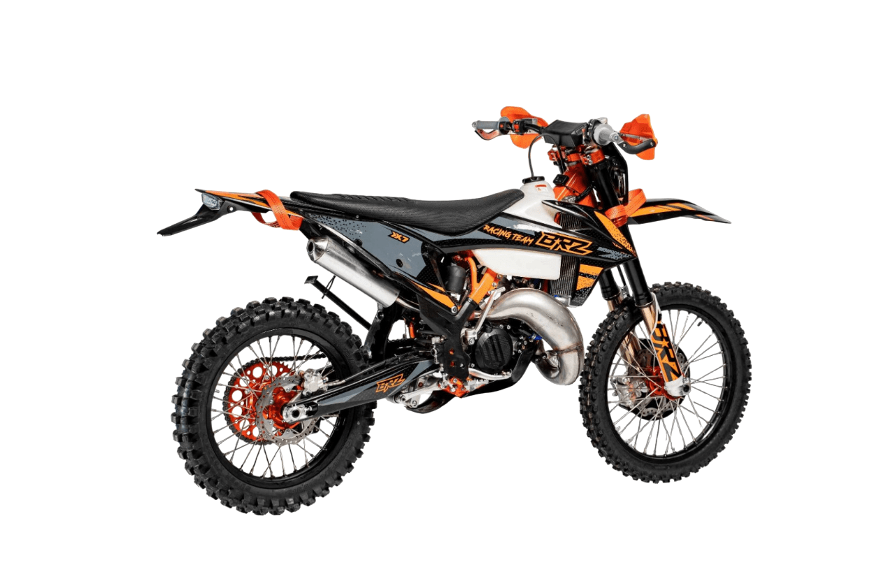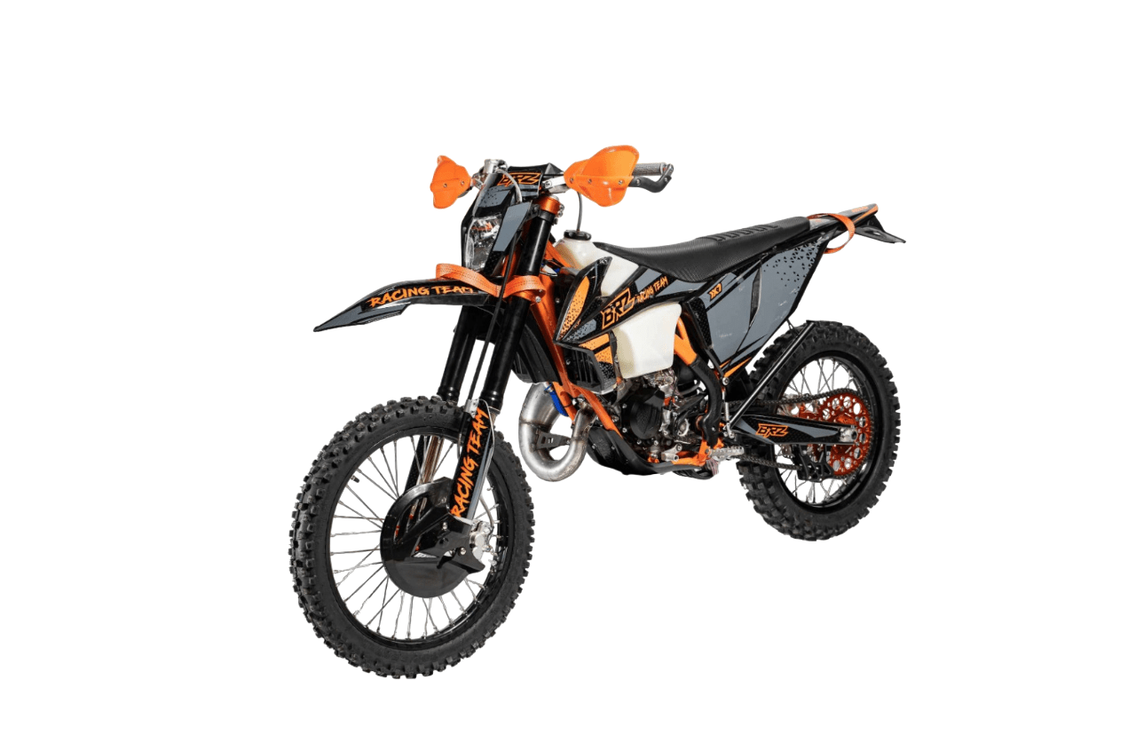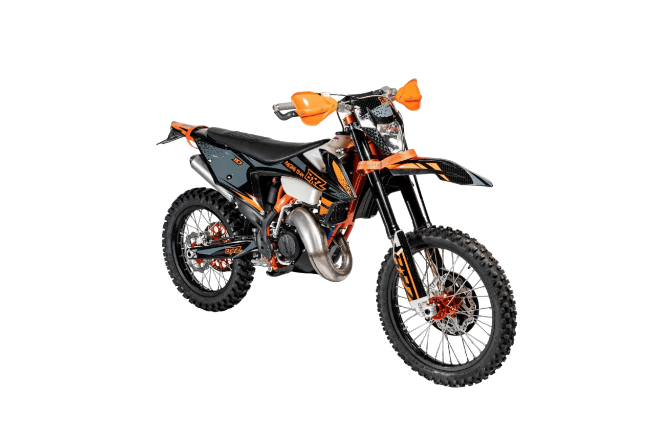 Мотоцикл BRZ X7 идеально себя чувствует в эндуро и кантри кросс дисциплинах. Идеально зайдет после владения «воздушкой». Сочные низа дают уверенность при преодолении сложных препятствий и подъемов с переставками. С газа поднимает на заднее колесо на любой передаче! Двигатель Двигатель За основу мотоцикла взят самый популярный двигатель NC250 (ZS177FMM). В 22 году было принято решение не оснащать двигатель увеличенной поршневой, т.к. 300сс поршневая требует постоянной и сложной подстройки, перебор жиклеров и тп. 250-ка в этом отношении намного проще и стабильнее. Она также более сбалансирована и хорошо работает как на низких, так и на высоких оборотах. Карбюратор В паре с двигателем установлен карбюратор NIBBI PWK 34, надежный и неприхотливый в эксплуатации. Выхлопная система Для реализации всего потенциала двигателя на BRZ X6 применена тюнингованная выхлопная система. Увеличили длину, диаметр выхлопной трубы. Увеличили диаметр и дизайн «груши» для лучшего подпора выхлопных газов, что дает заметный прирост на низах. Сцепление Чтобы передавать всю мощность двигателя на трансмиссию была доработана система сцепления.