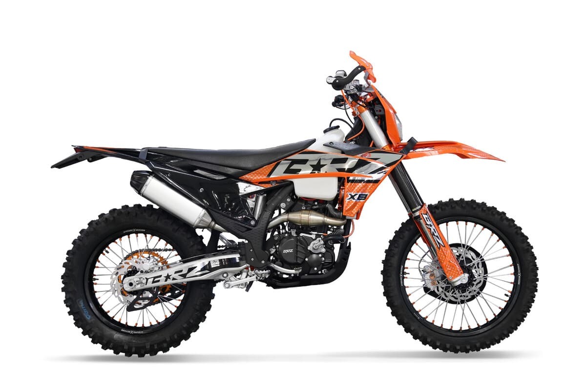Новинка от компании BRZ - полноразмерный мотоцикл BRZ X8 NB300 24 в пластике КТМ 24 года на абсолютно новой раме. BRZ X8 NB300 24 оснащен двигателем ZS174MN-5, тот самый надежный и тяговитый NB мотор с «косой» головой. Мотор работает в паре с карбюратором NIBBI RACING PWK 34, что дает отличное раскрытие мощностного потенциала. Мотоцикл BRZ X8 NB300 24 построен на абсолютно новой раме КТМ 24 года. Помимо улучшенной развесовки, мотор в раме стал располагаться ниже, за счет чего центр тяжести также стал ниже. Всё это повлияло на управляемость - она стала легкой и четкой, мотоцикл получился очень "послушным".