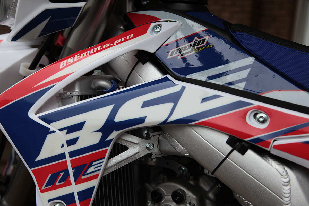 Ставший уже классикой в мире мотокросса и эндуро среди китайских производителей - полноразмерный мотоцикл на оригинальной, многосоставной, невероятно крепкой и запатентованной заводом Bosuer алюминиевой раме.