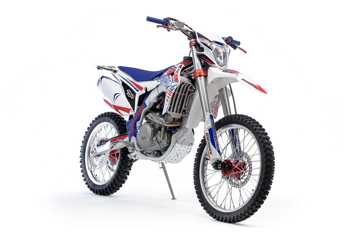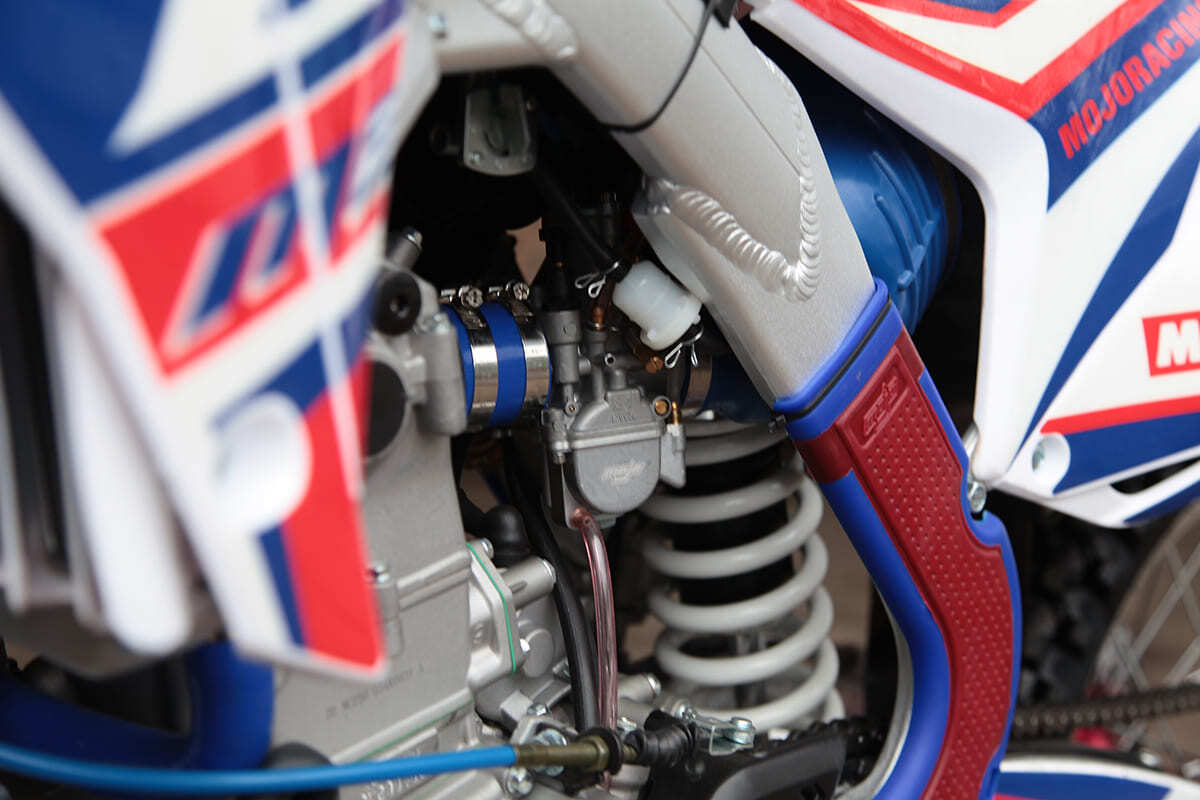 M2 уже в заводской комплектации готов к покорению серьезного бездорожья и участия в соревнованиях. Подвеска MOJO c большими ходами имеет полный диапазон регулировок и помогает отрабатывать даже самые жесткие приземления, с лёгкостью "проглатывает" все неровности. Идеальная развесовка и сбалансированность конструкции мотоцикла даёт преимущество при прохождении острых поворотов и подъёмов.