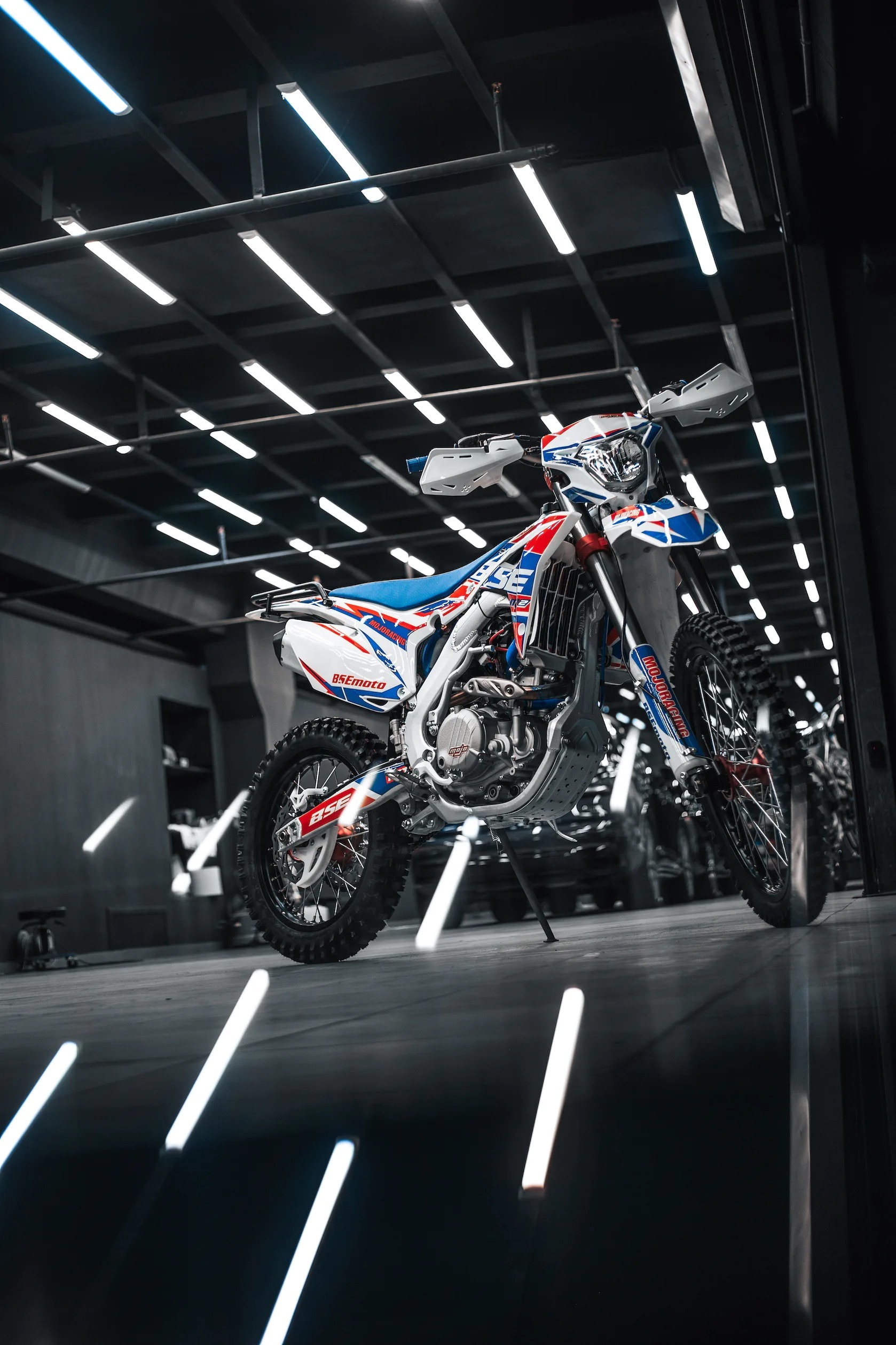 Ставший уже классикой в мире мотокросса и эндуро среди китайских производителей - полноразмерный мотоцикл на оригинальной, многосоставной, невероятно крепкой и запатентованной заводом Bosuer алюминиевой раме.