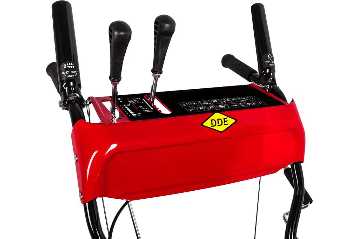 Самоходный снегоуборщик DDE ST7067 предназначен для очистки от снега придомовой территории, садовых и подъездных дорожек, парковочных мест и других небольших территорий. Имеет литые резиновые колеса, фару и электростартер. Кроме того, снегоуборщик отличается наличием 8 передач — 6 вперед и 2 назад, поэтому вы запросто сможете подобрать для себя оптимальный режим работы.