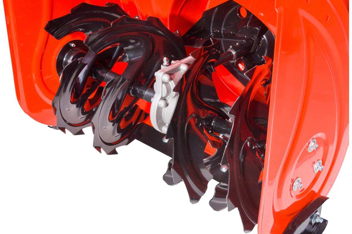 ● стальные шнеки с зубцами измельчают плотный снег и лед;