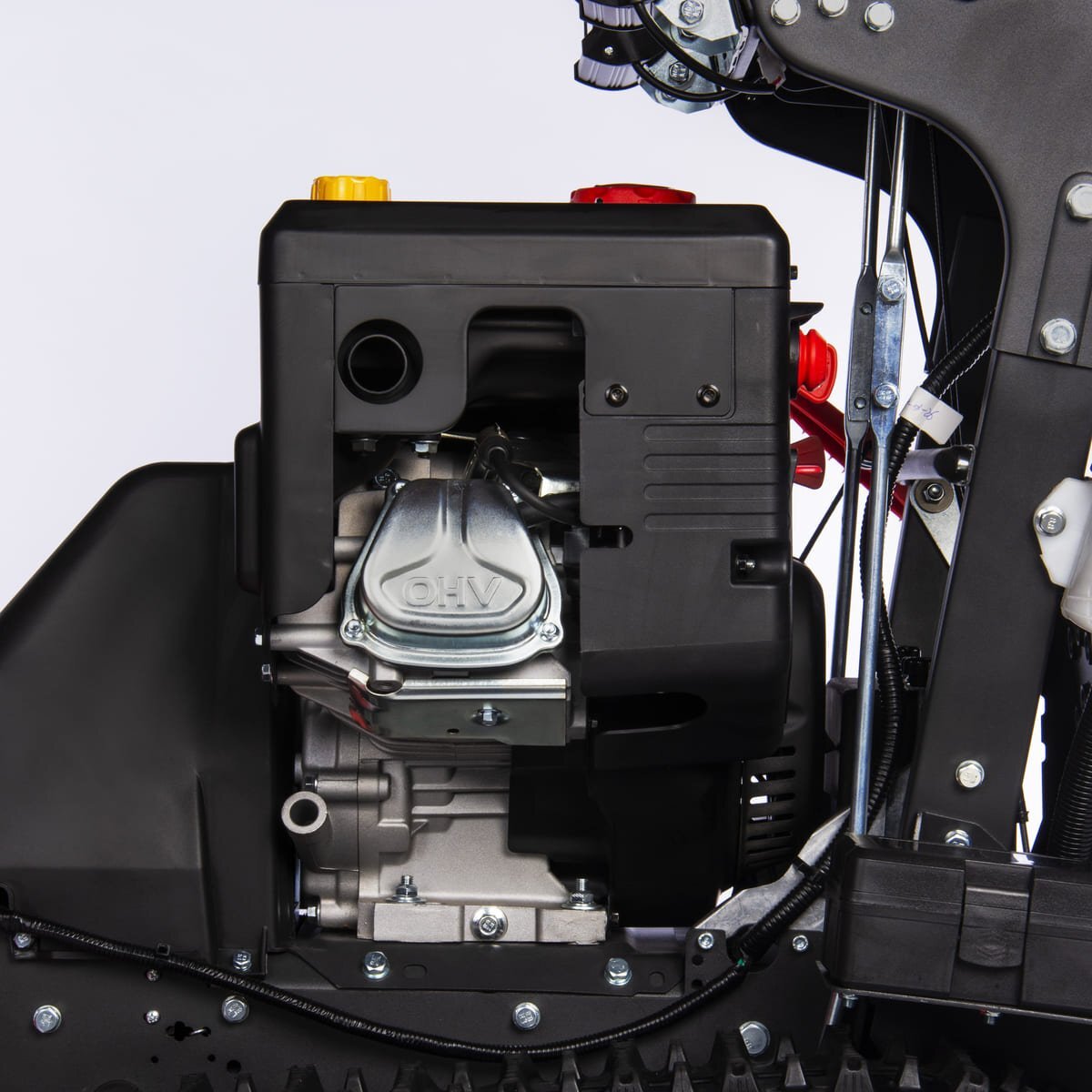 Профессиональная гусеничная снегоуборочная машина Kettama 400 Pro Hydrostatic оснащена гидростатической трансмиссией и вариаторной коробкой передач Multitronic с повышенным крутящим моментом до 300 Нм. При этом агрегат обладает компактными размерами и самой высокой среди аналогов производительностью до 32 т/ч при работе со снегом до 250 кг/м3 (за 30 минут можно очистить территорию в 40 парковочных мест). Машина способна убирать не только обычный снег, но и максимально плотный мокрый снег с элементами льда, плотностью до 550-600 кг/м3. Снегоуборщик оснащён инновационной системой дифференциала с ЭБУ, позволяющей делать нулевой радиус разворота. Серия снегоуборщиков Pro предназначена для уборки территорий торговых центров, спортивных и туристических баз, санаториев и домов отдыха, парков, фермерских хозяйств, загородных коттеджей. Профессиональный двигатель премиум-класса Технология OHV с верхним расположением клапанов способствует эффективному распределению топливной смеси и практически полному сгоранию, обеспечивая чистоту выхлопа и высокий КПД. Чугунная гильза цилиндра, высококачественные материалы и чёткая подгонка компонентов увеличивают ресурс двигателя. Мотор соответствует экологическим требованиям CARB и EPA. Профессиональная двухступенчатая система выброса снега Ступень №1 – смещённый угол шнека, усиленный дополнительными ребрами жёсткости, центральным ледорубом и подвесом редуктора, акцентированно измельчают и взбивают снежную массу, благодаря чему увеличивается дальность выброса снега и облегчается нагрузка на двигатель. Ступень №2 – крыльчатка специальной лопаточной формы с рёбрами жесткости и частотой вращения 1200 об/мин. Лопасти крыльчатки выполнены с добавлением хроммомолибденового сплава и усилены металлическими пластинами. Такая конструкция позволяет отбрасывать снег на расстояние до 18 метров. Комплексная система удаления ледяного наста Icebreaker HST Система представляет собой сочетание нескольких элементов, которое позволяет работать в самых сложных условиях. Она включает: - Низкий центр тяжести, смещённый в сторону ковша, что позволяет машине эффективно удалять нижние слои ледяного наста. - Профессиональный редуктор с ресурсом 12 000 часов. Оси редуктора установлены в прочном шариковом подшипнике. Редуктор имеет цельный корпус. В качестве смазочного материала используется трансмиссионное масло 80W90, что даёт экономию при обслуживании и возможность эксплуатации при экстремально низких температурах до 35°C. - Шнек с агрессивным профилем из высоколегированной стали. Децентрованный шнек имеет зубчатую режущую кромку, которая с лёгкостью разрубает слежавшийся снег и ледяной наст. - Трёхточечное крепление шнека: ось установлена на двух шариковых подшипниках, а третья точка – соединение редуктора с ковшом металлической пластиной. Такая прочная конструкция способна выдерживать работу с плотным снегом и ледяным настом. - Гусеничный ход. Использование гусениц прямоугольной формы с системой «антиналедь» и самоочисткой увеличивает пятно контакта и обеспечивает непревзойденную проходимость на любых поверхностях: скользких, заснеженных, даже по глубокому рыхлому снегу. Это идеальное решение для работы на неровных рельефах и склонах. - Профессиональная гидростатическая трансмиссия с бесступенчатой коробкой передач разра