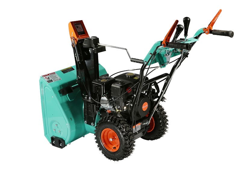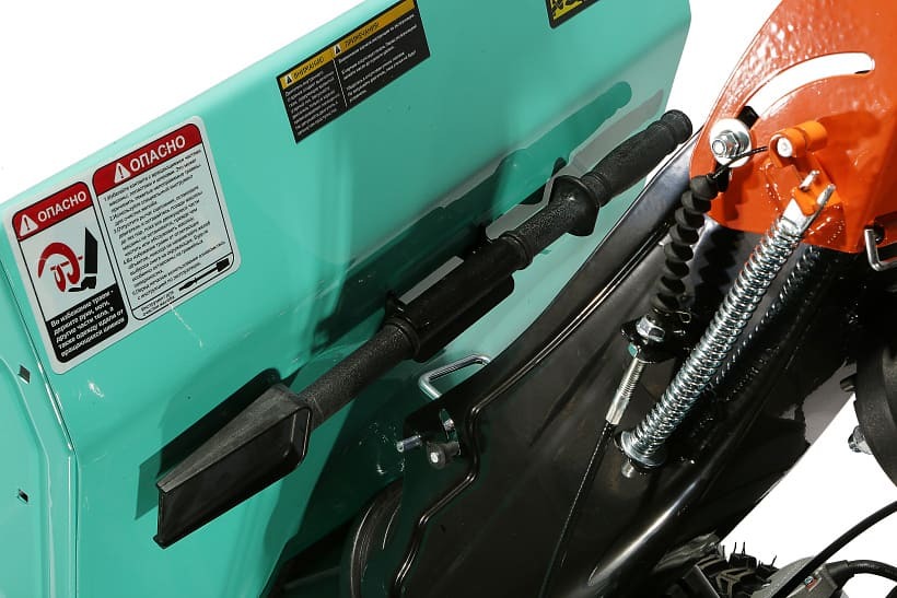 - Удобство работы. Рычаг управления желобом снегоотбрасывателя всегда под рукой у пользователя для установки и изменения направления выброса снега.